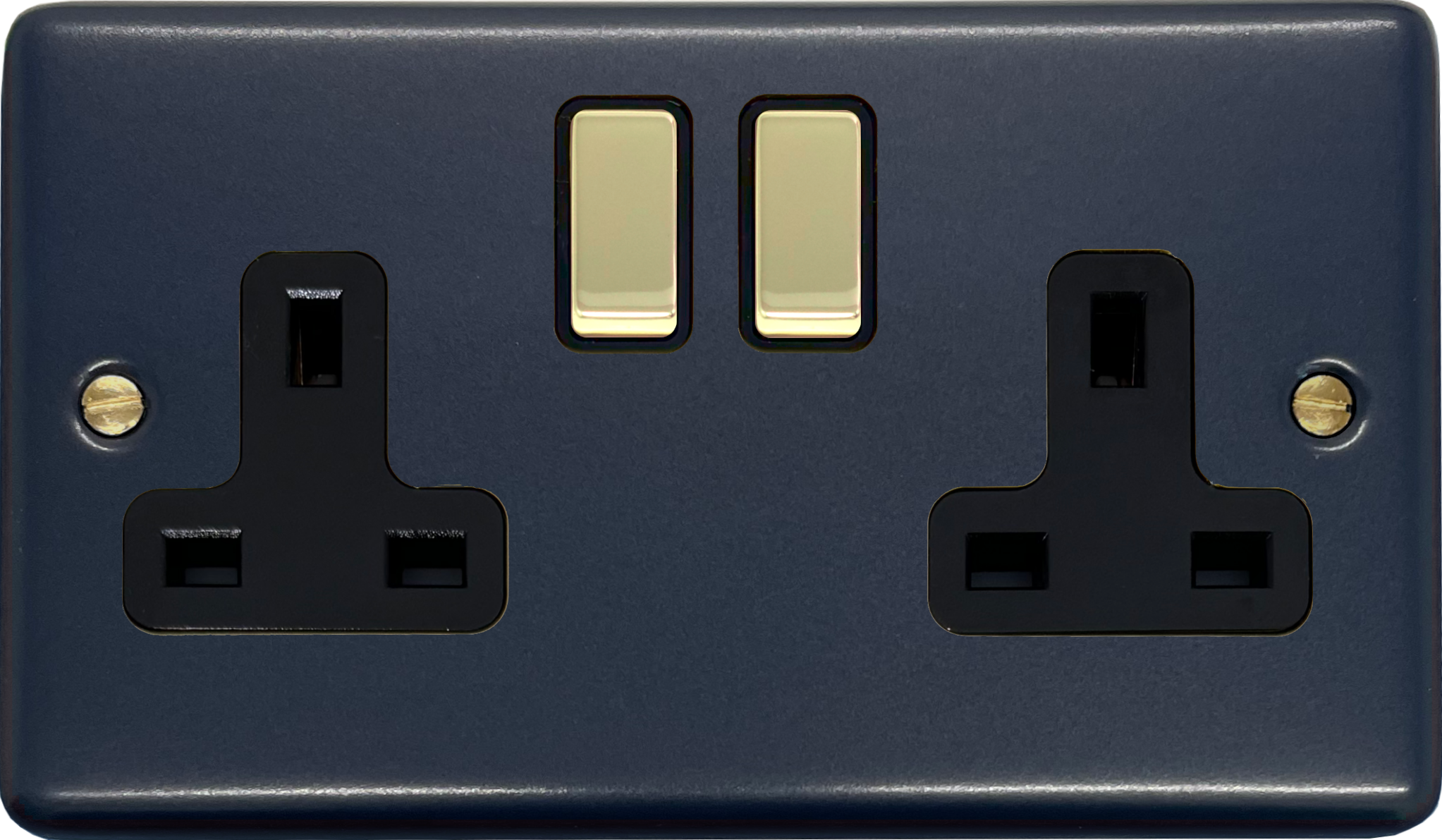 Contour Blue Double Socket (Black Insert/Polished Brass Switches) - G+H CRB310-PB