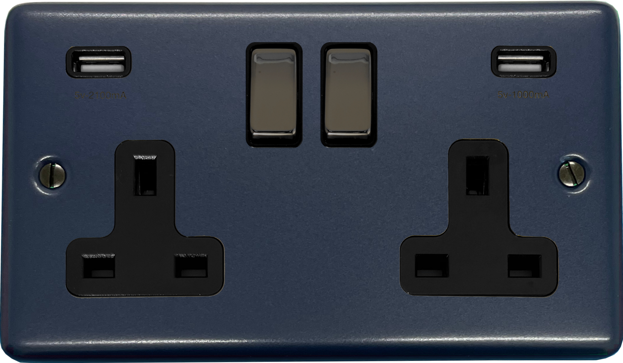 Contour Blue Double Socket with USB (Black Insert/Black Nickel Switches) - G+H CRB3910-BN