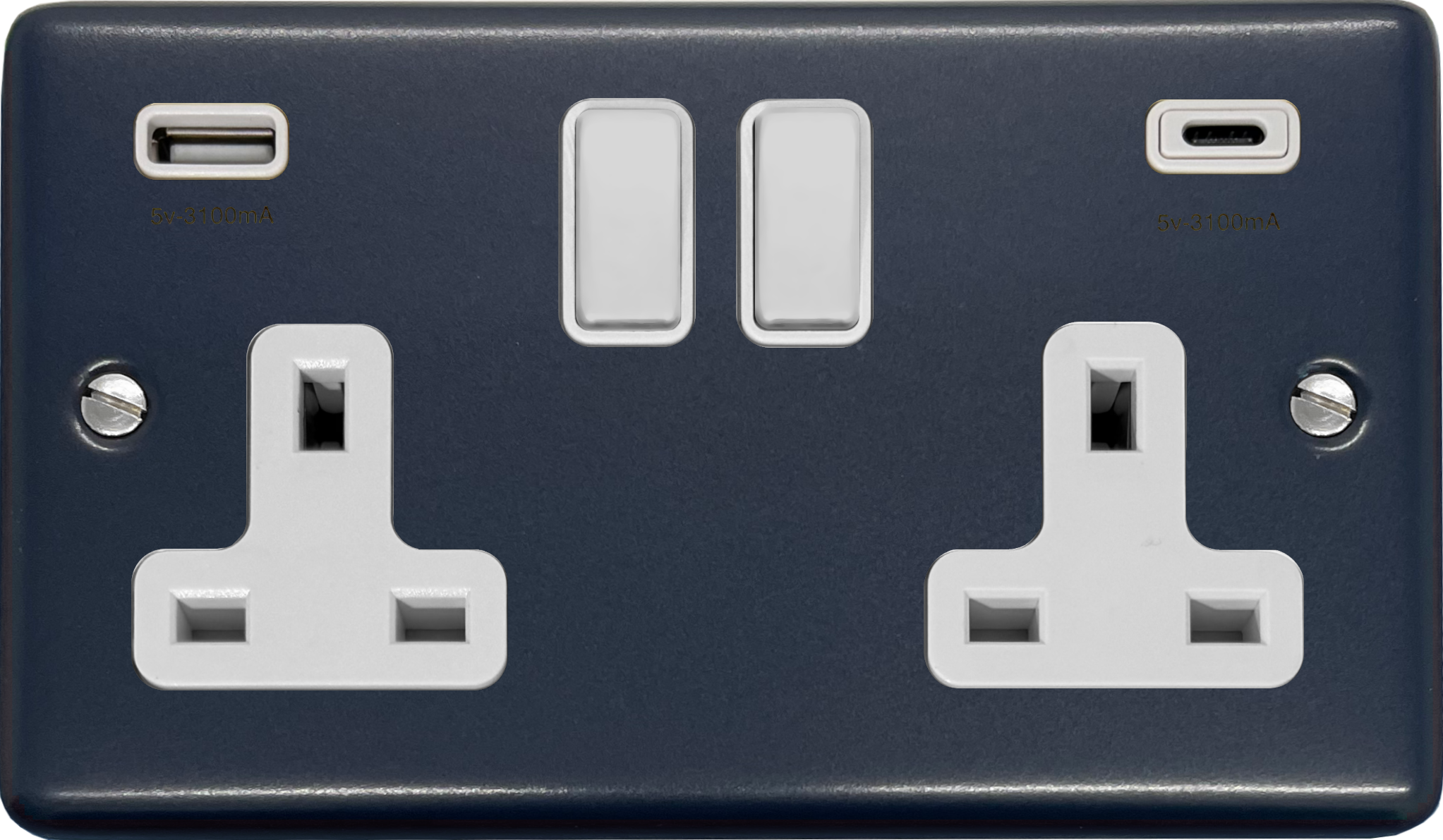 Contour Blue Double Socket with USB (USB-A and USB-C/White Switches) - G+H CRB911W