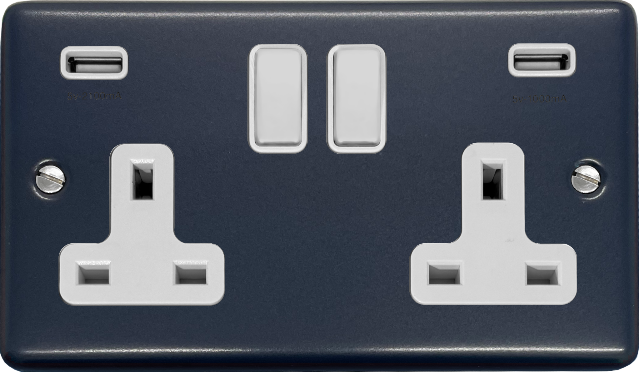 Contour Blue Double Socket with USB (White Switches) - G+H CRB910W