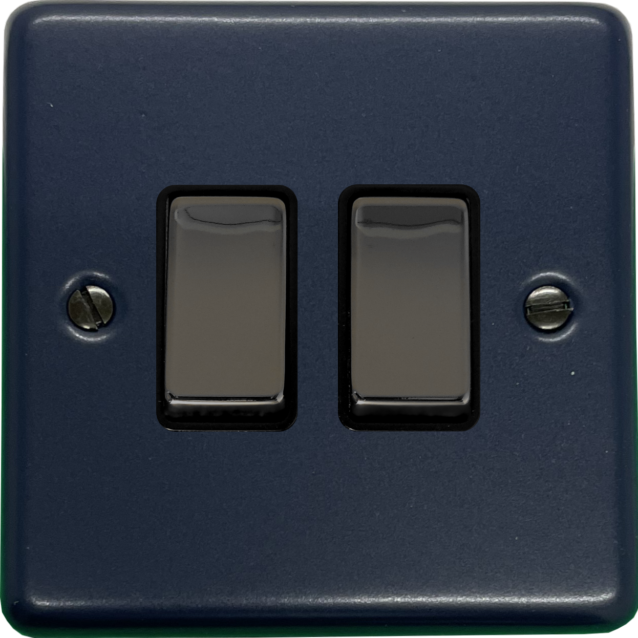 Contour Blue Light Switch (2 Gang/Black Insert/Black Nickel Switches) - G+H CRB302-BN