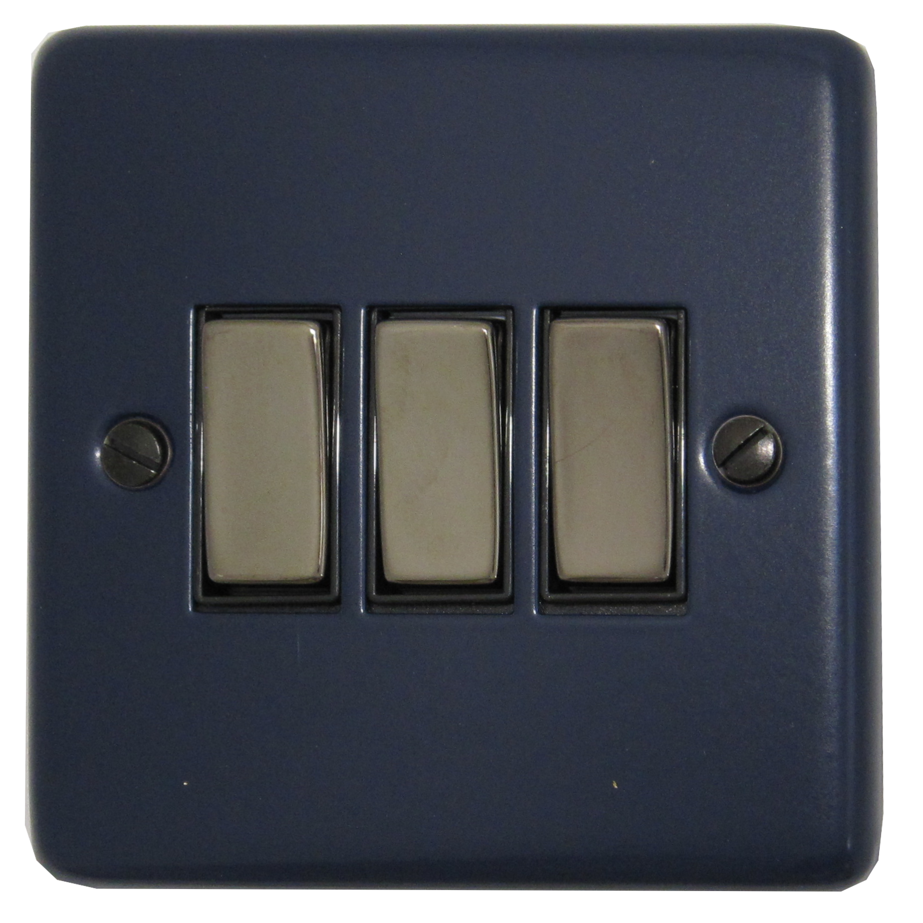 Contour Blue Light Switch (3 Gang/Black Insert/Black Nickel Switches) - G+H _CRB3