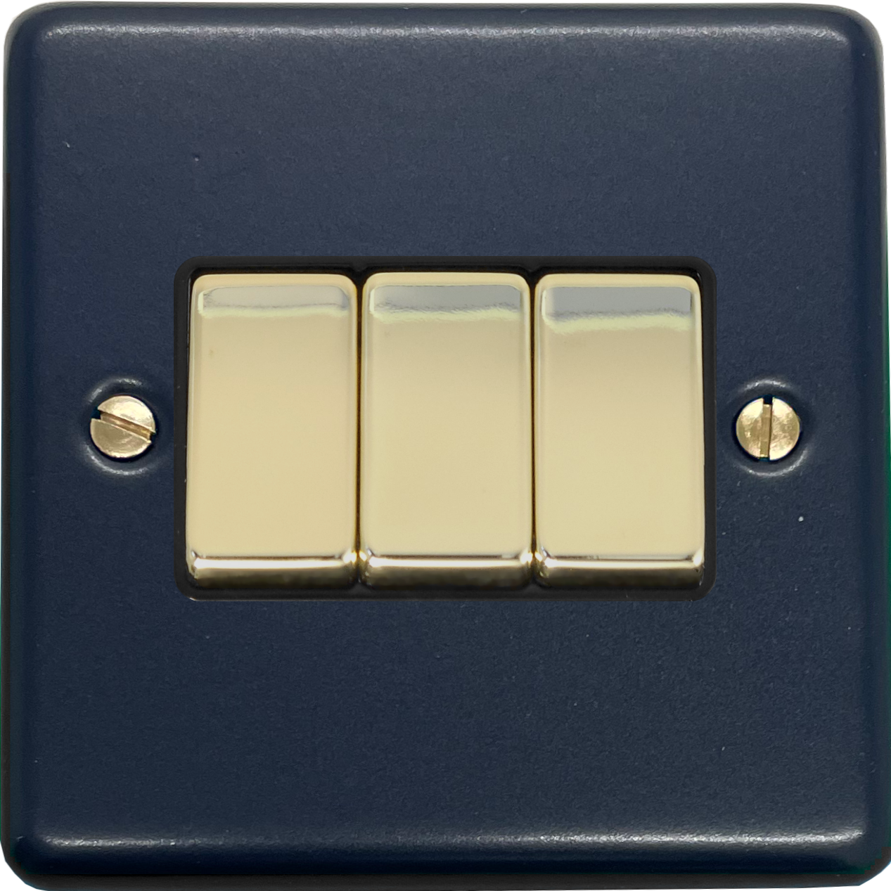 Contour Blue Light Switch (3 Gang/Black Insert/Polished Brass Switches) - G+H CRB303-PB
