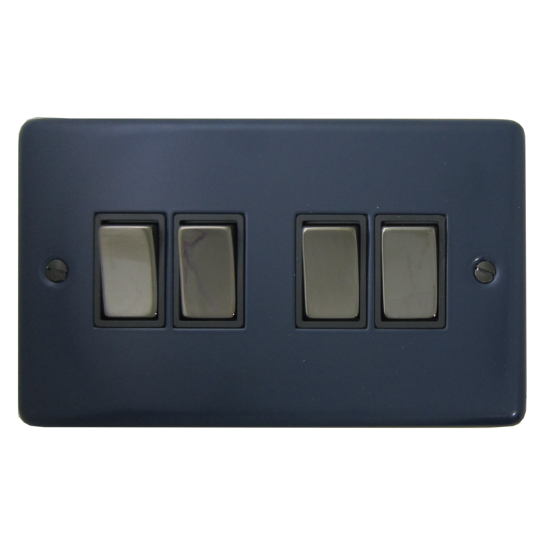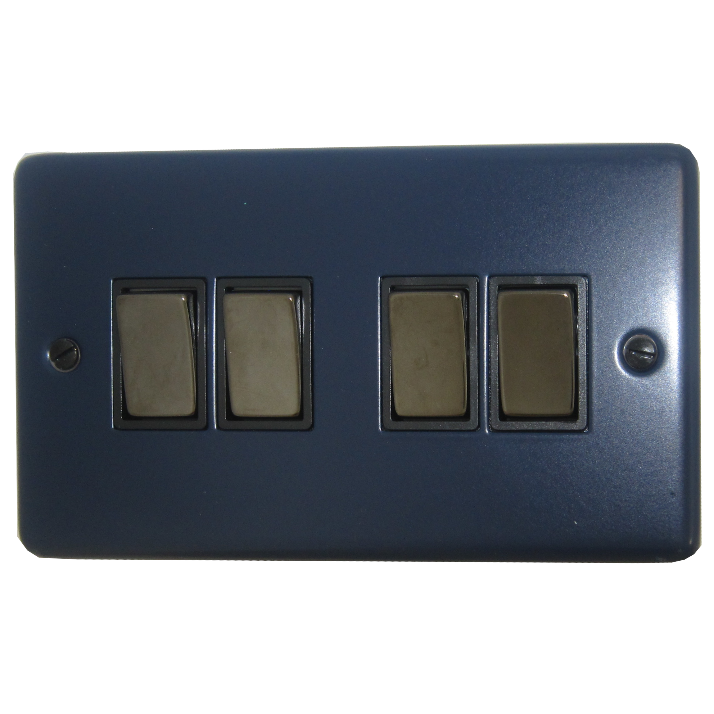 Contour Blue Light Switch (4 Gang/Black Insert/Black Nickel Switches) - G+H CRB304-BN