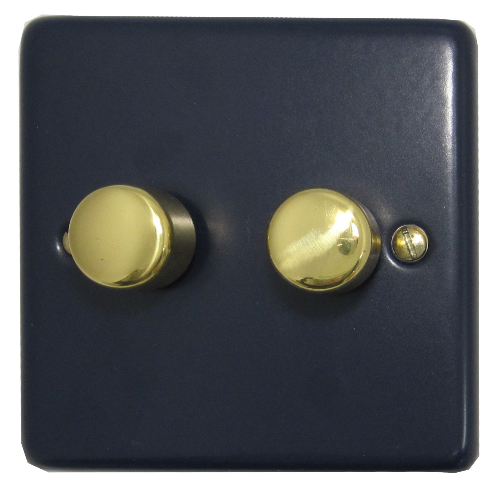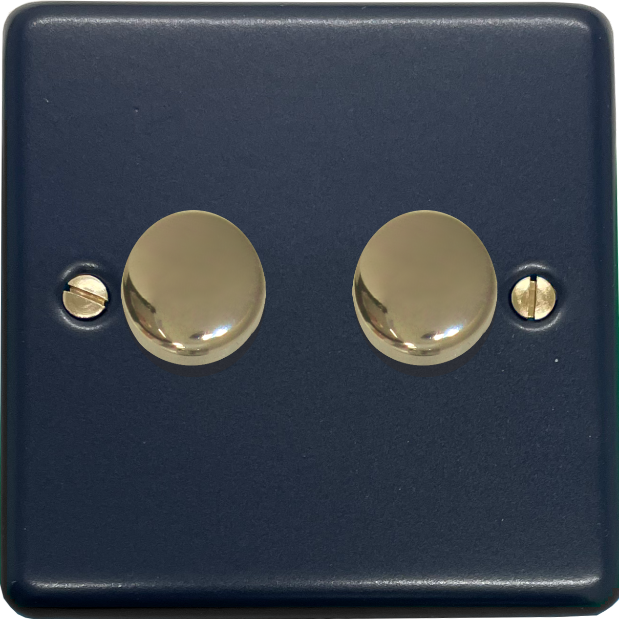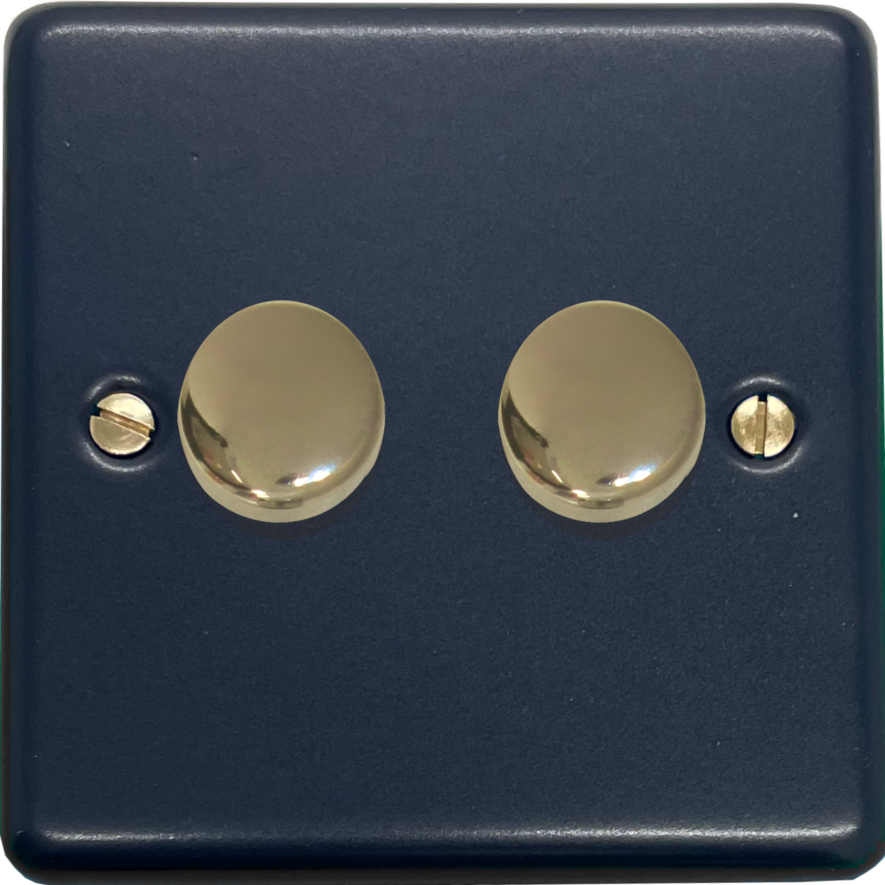 Contour Blue Push LED Dimmer (2 Gang/Polished Brass Caps) - G+H CRB522-PB