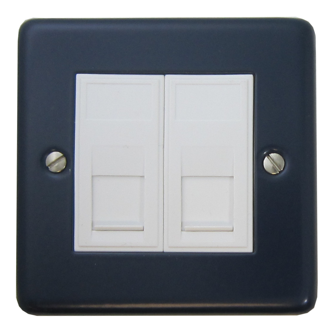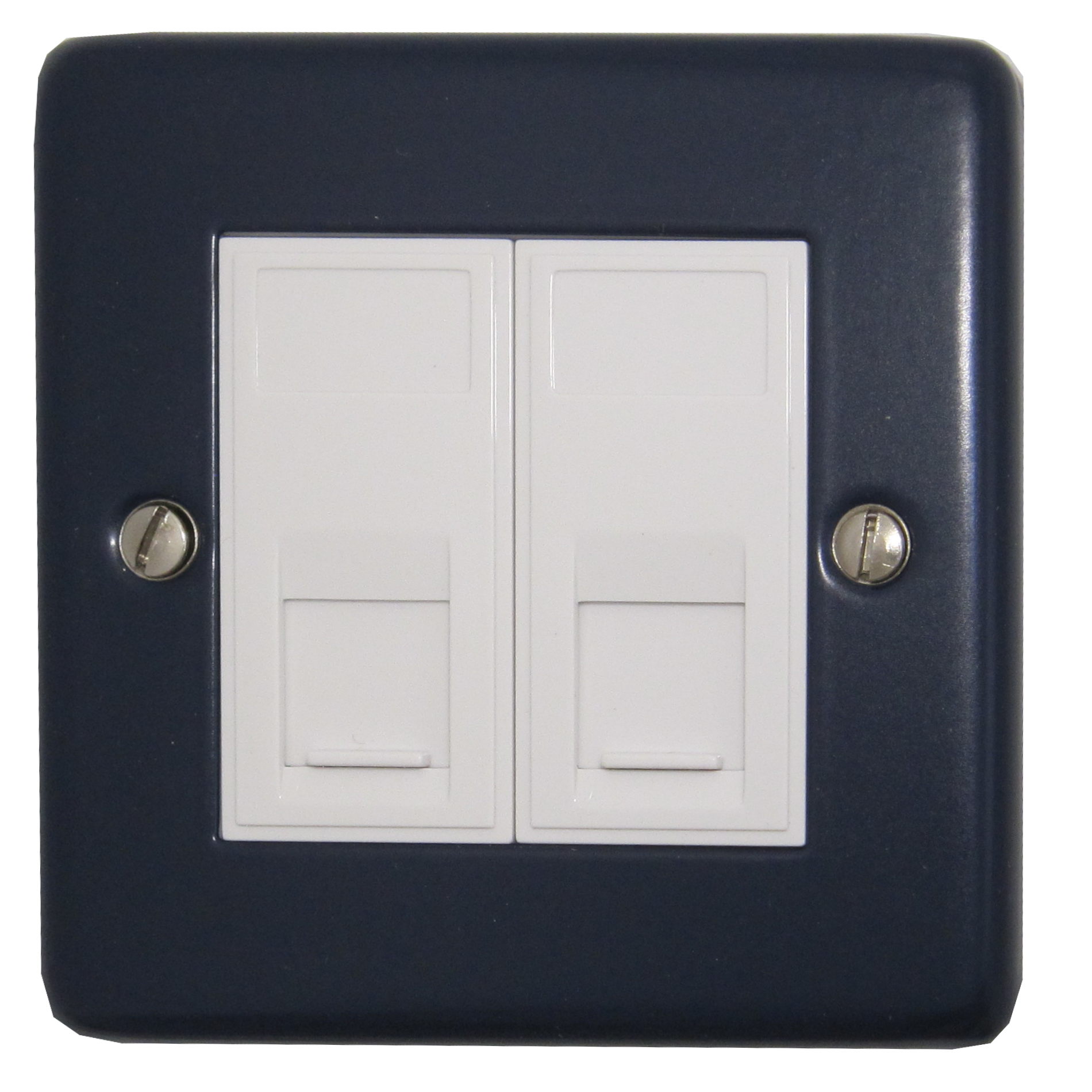 Contour Blue RJ45 Socket (2 Gang/White Insert) - G+H CRB62W