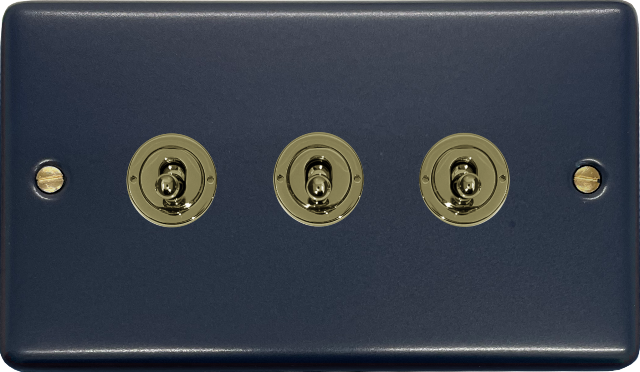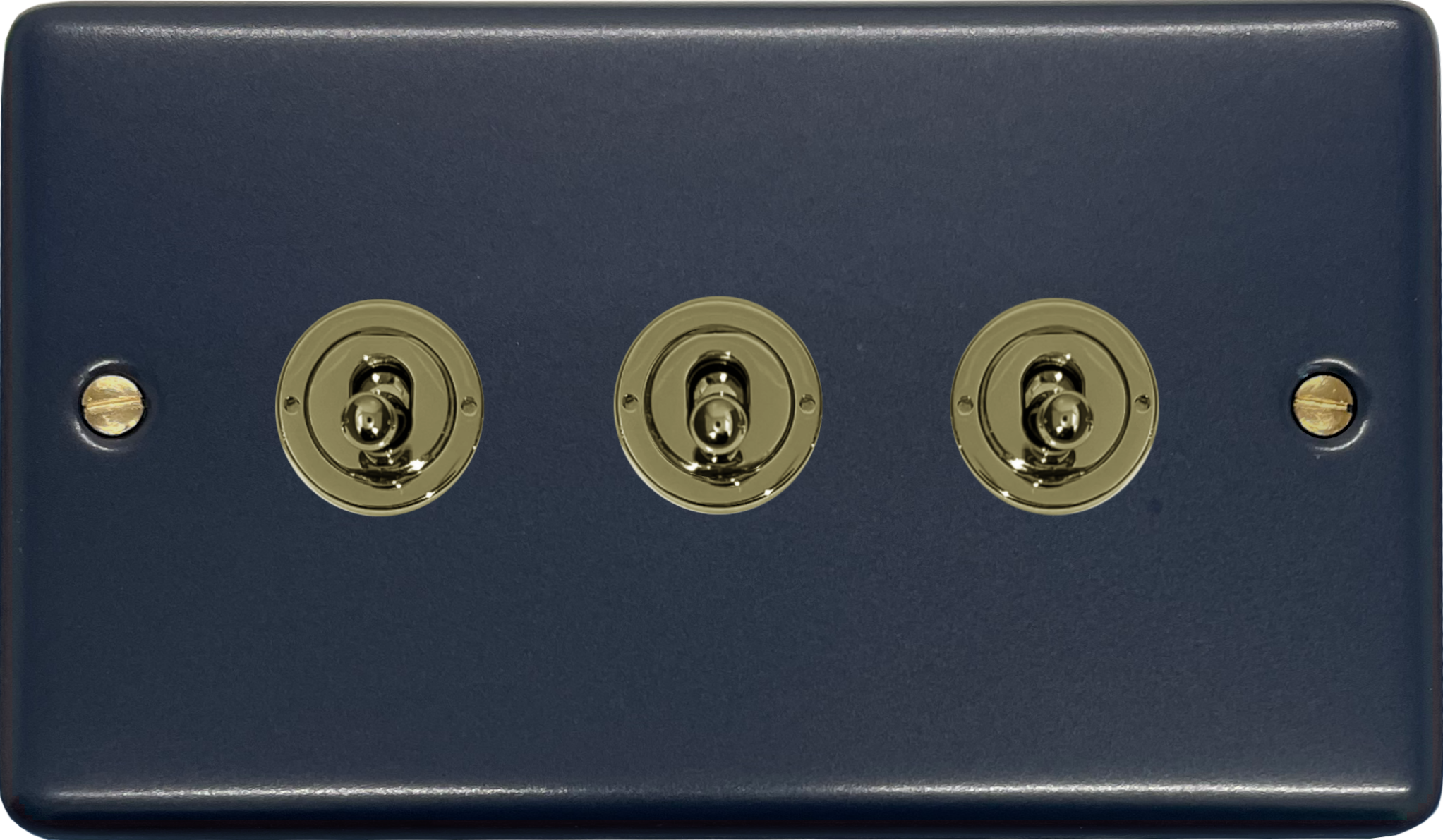 Contour Blue Toggle Switch (3 Gang/Polished Brass Switches) - G+H CRB383-PB