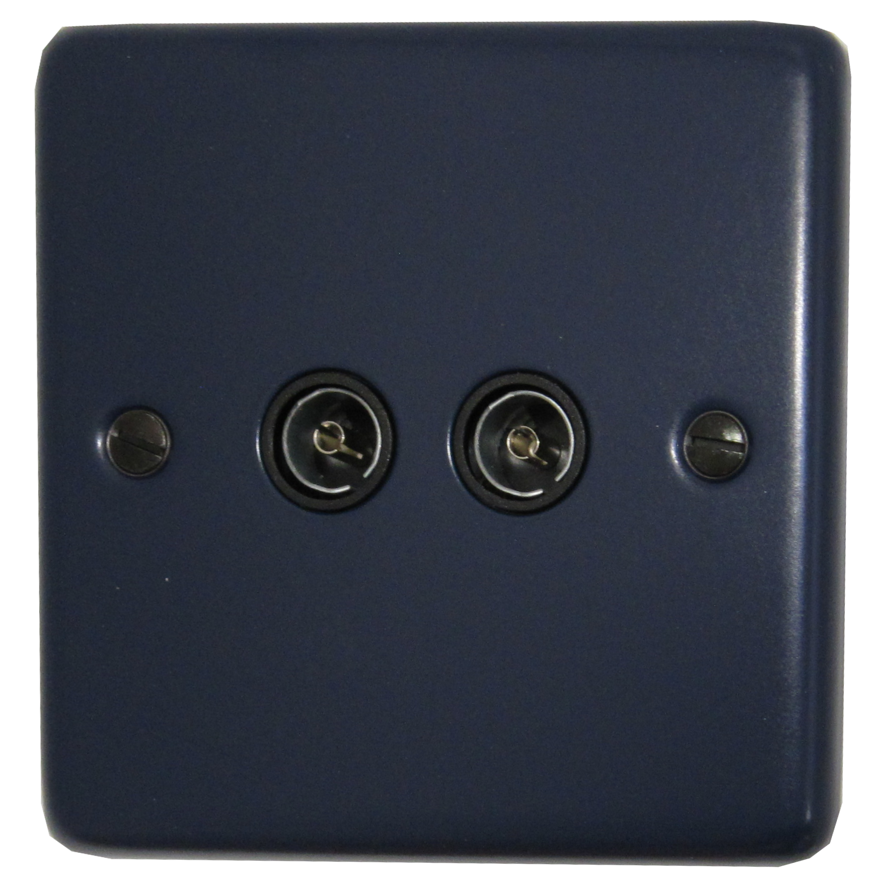 Contour Blue TV Socket (2 Gang/Black Insert) - G+H CRB36B