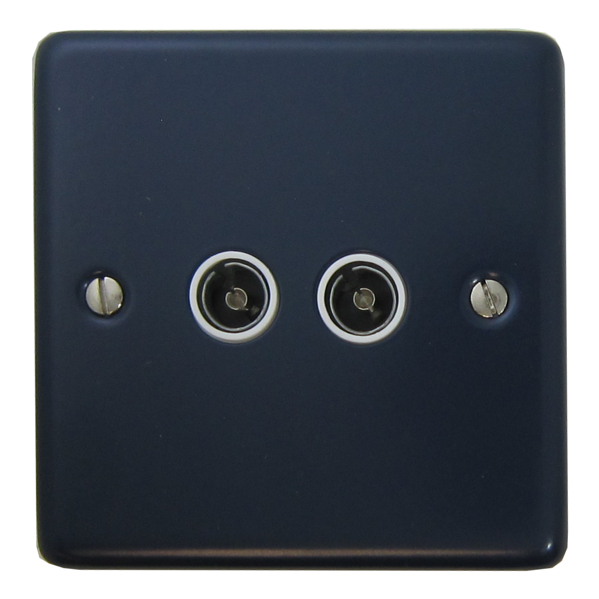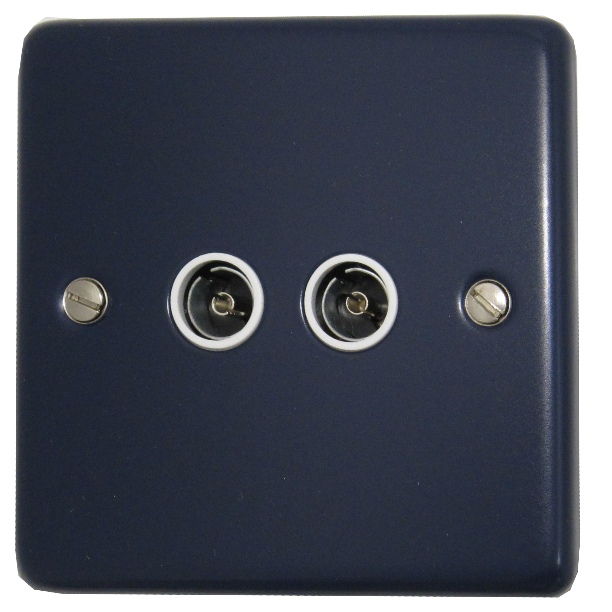 Contour Blue TV Socket (2 Gang/White Insert) - G+H CRB36W