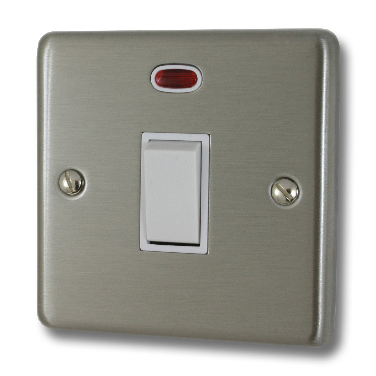 Contour Brushed Steel 20A DP Switch with Neon (White Switch) - G+H CSS26W