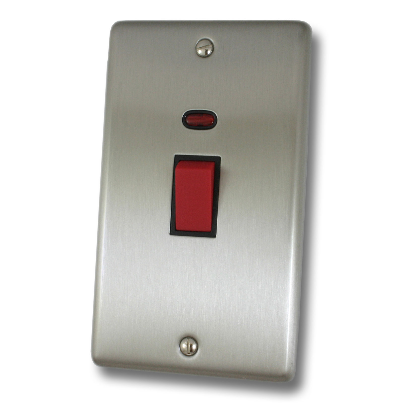 Contour Brushed Steel 45A DP Switch (Black Insert/Vertical Plate) - G+H CSS28B