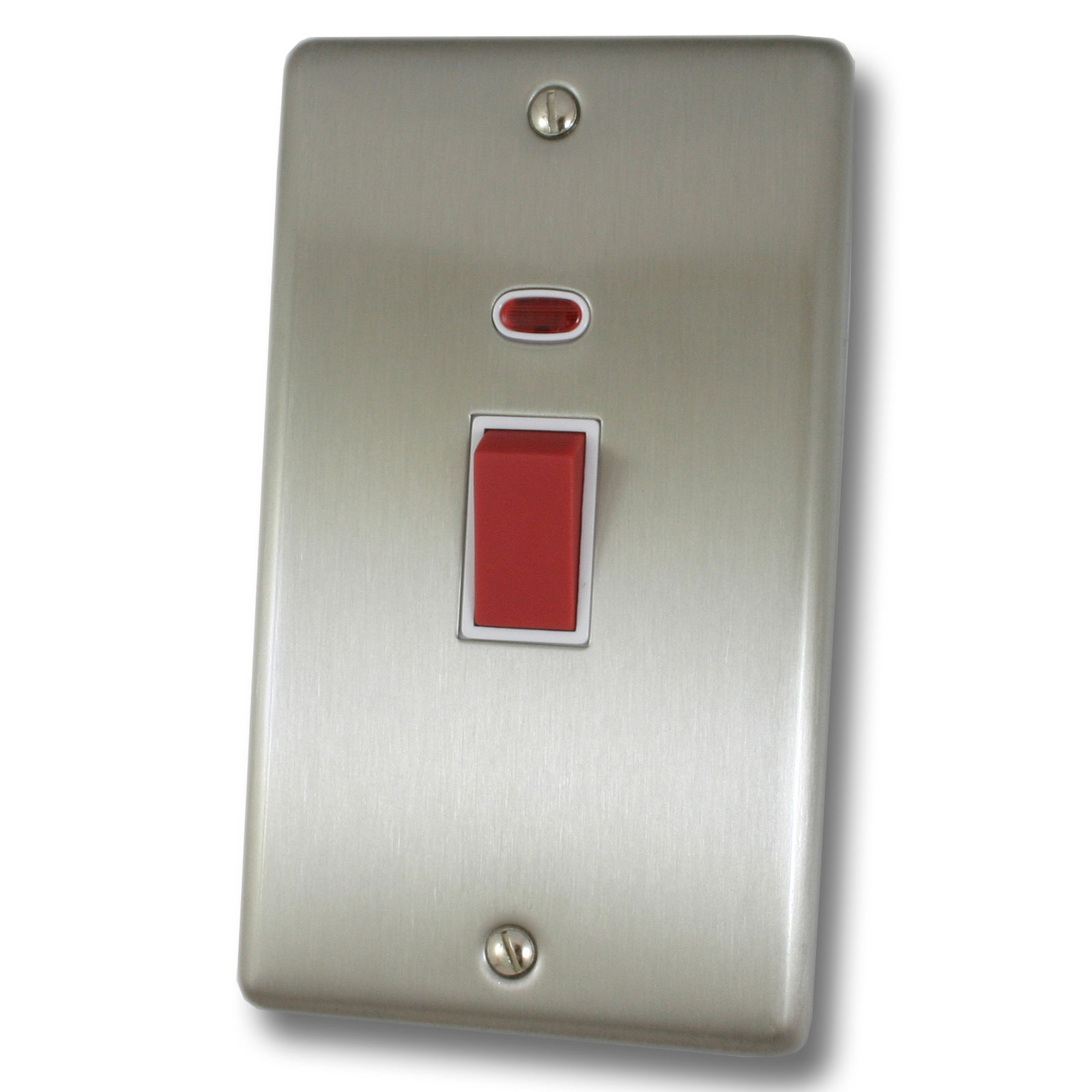 Contour Brushed Steel 45A DP Switch (White Insert/Vertical Plate) - G+H CSS28W