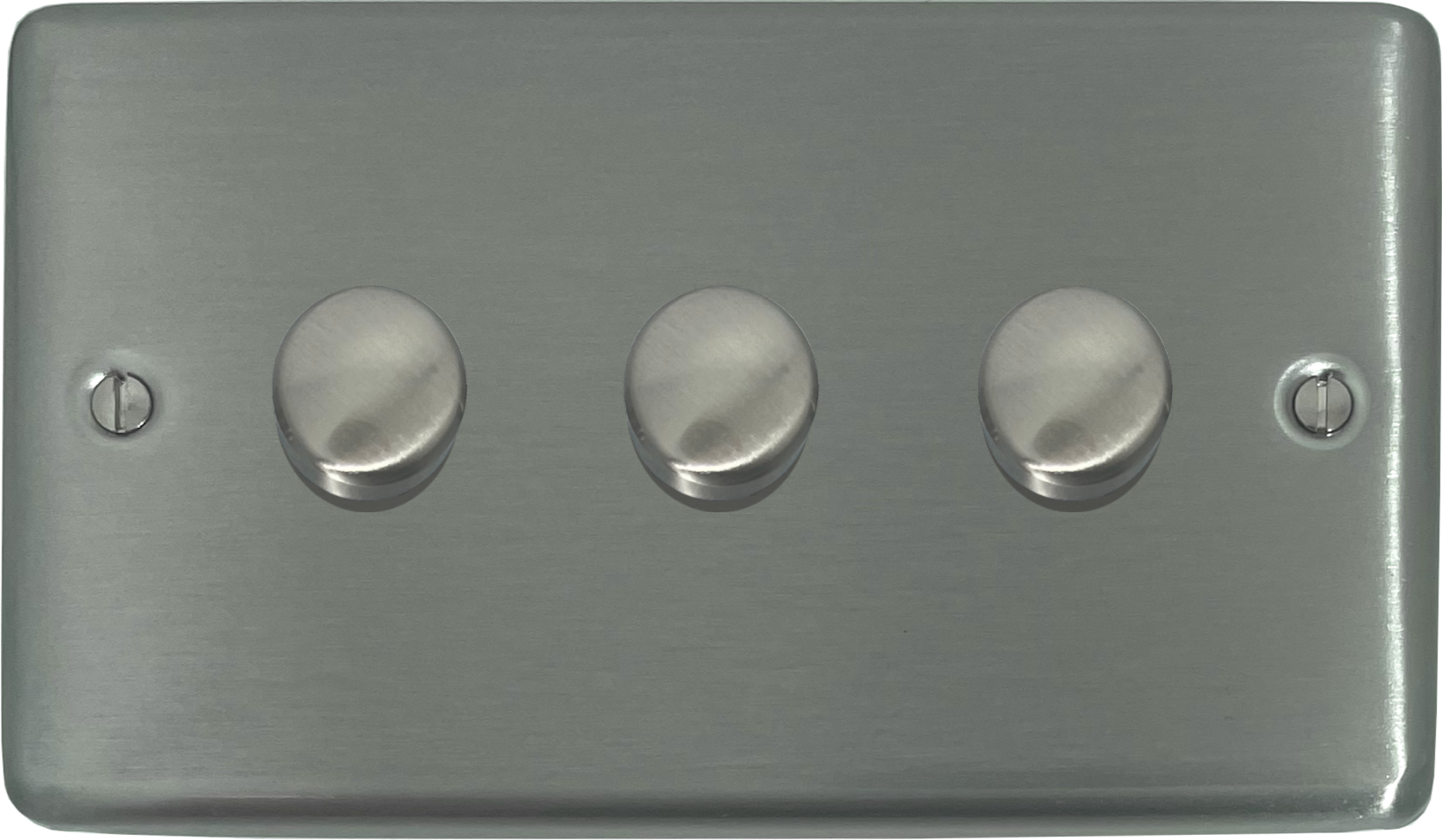 Contour Brushed Steel LED Dimmer (3 Gang)