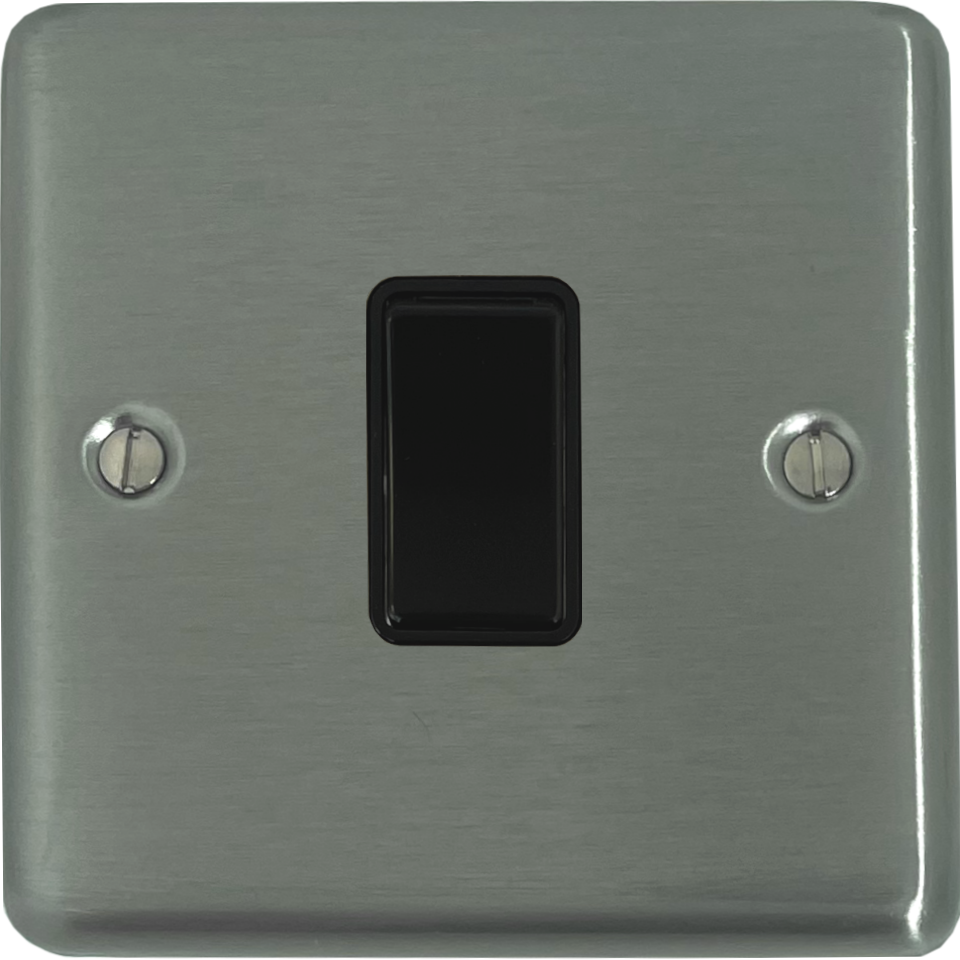 Contour Brushed Steel Light Switch (1 Gang/Black Switch) - G+H CSS1B
