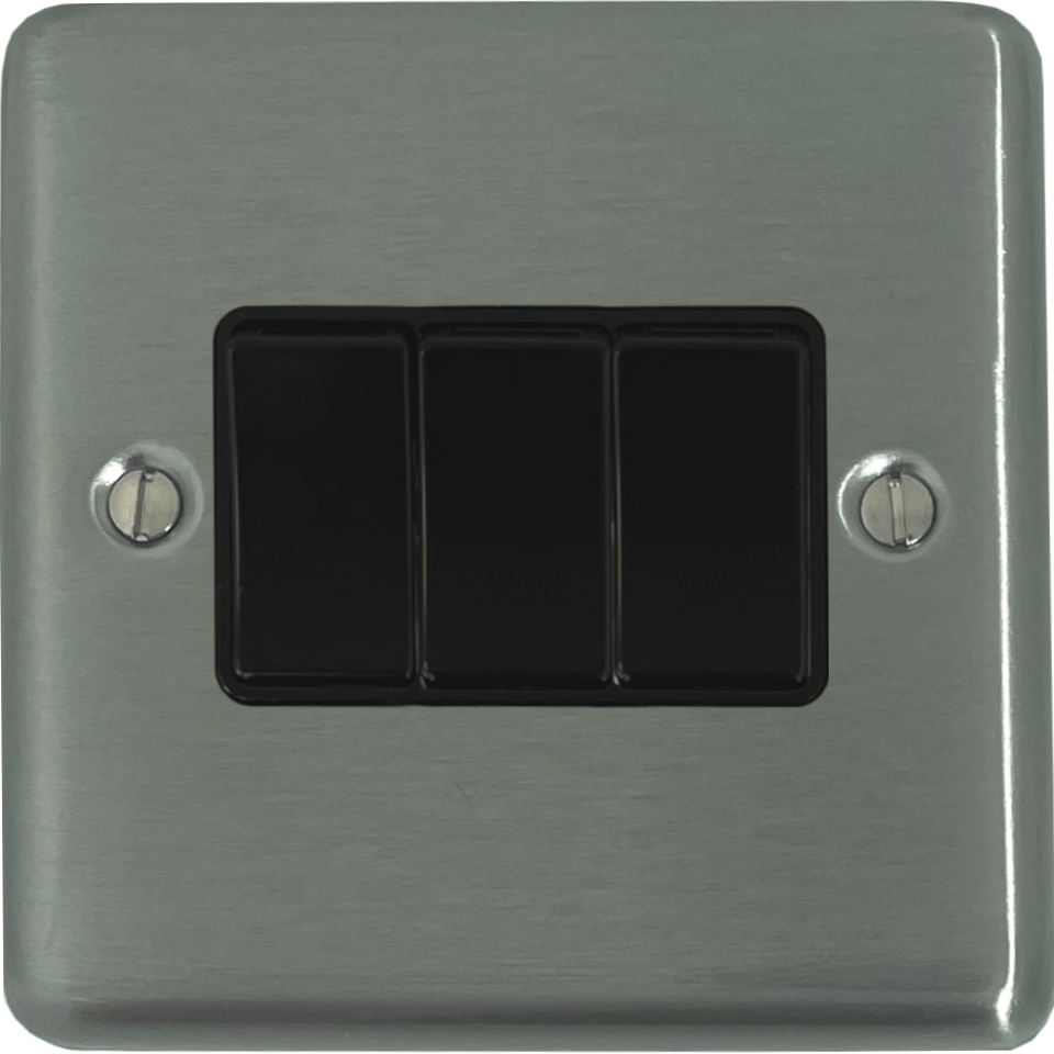 Contour Brushed Steel Light Switch (3 Gang/Black Switch) - G+H CSS3B