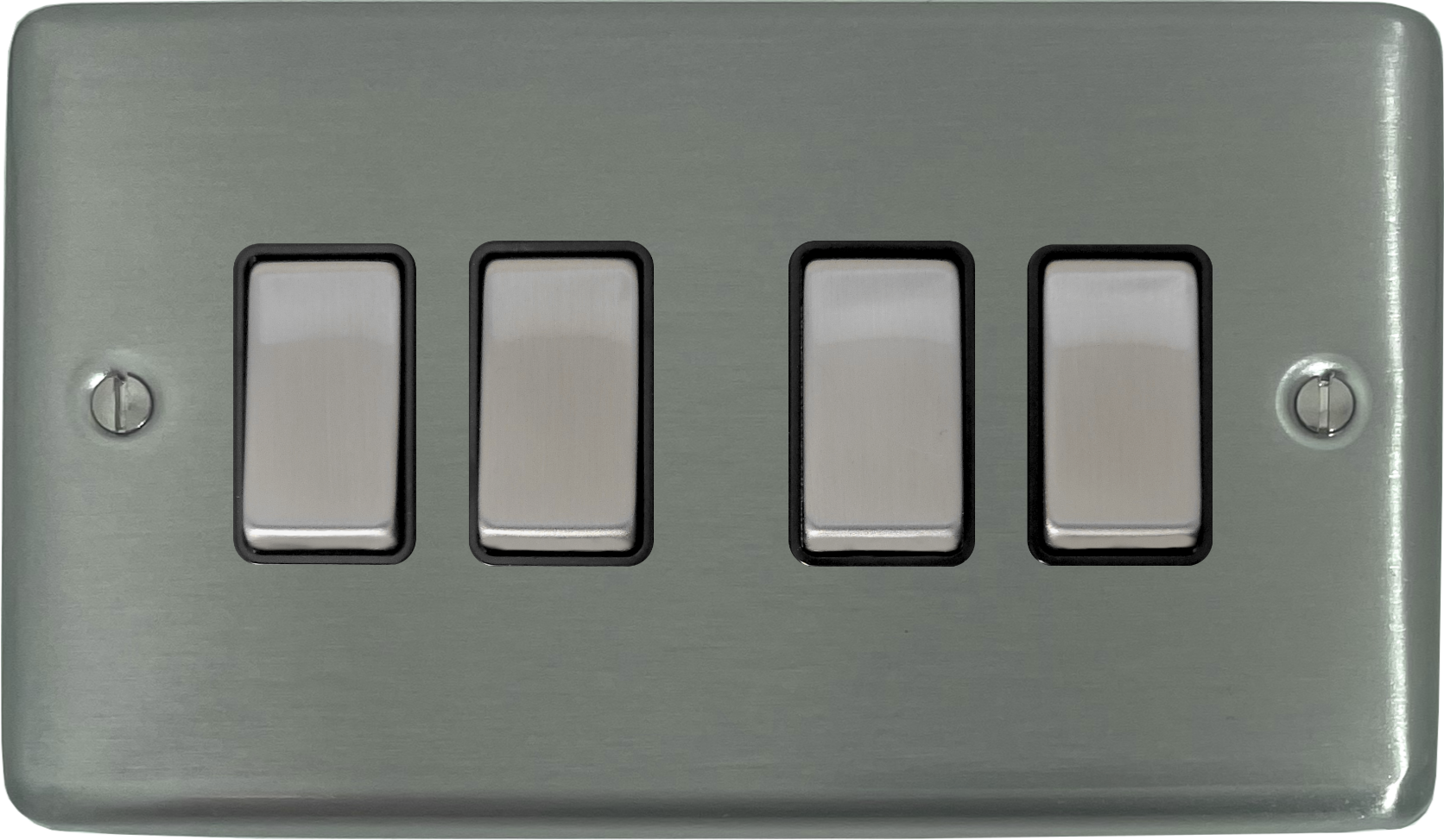 Contour Brushed Steel Light Switch (4 Gang/Black Insert/Satin Chrome Switches) - G+H CSS304