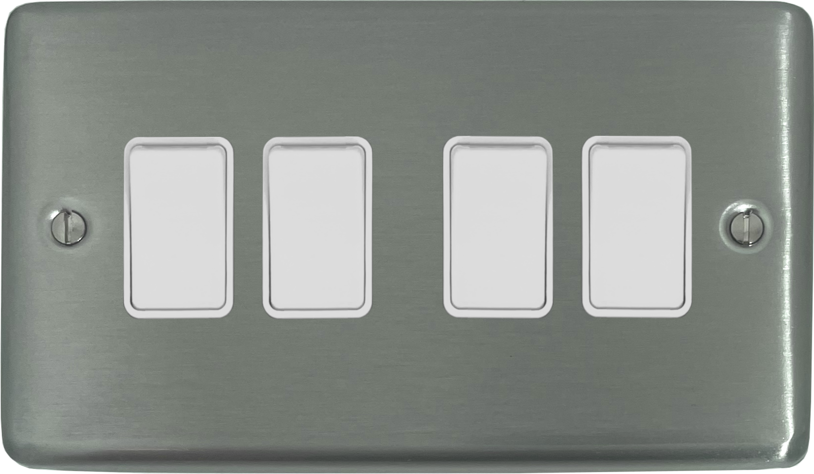 Contour Brushed Steel Light Switch (4 Gang/White Switches) - G+H CSS4W