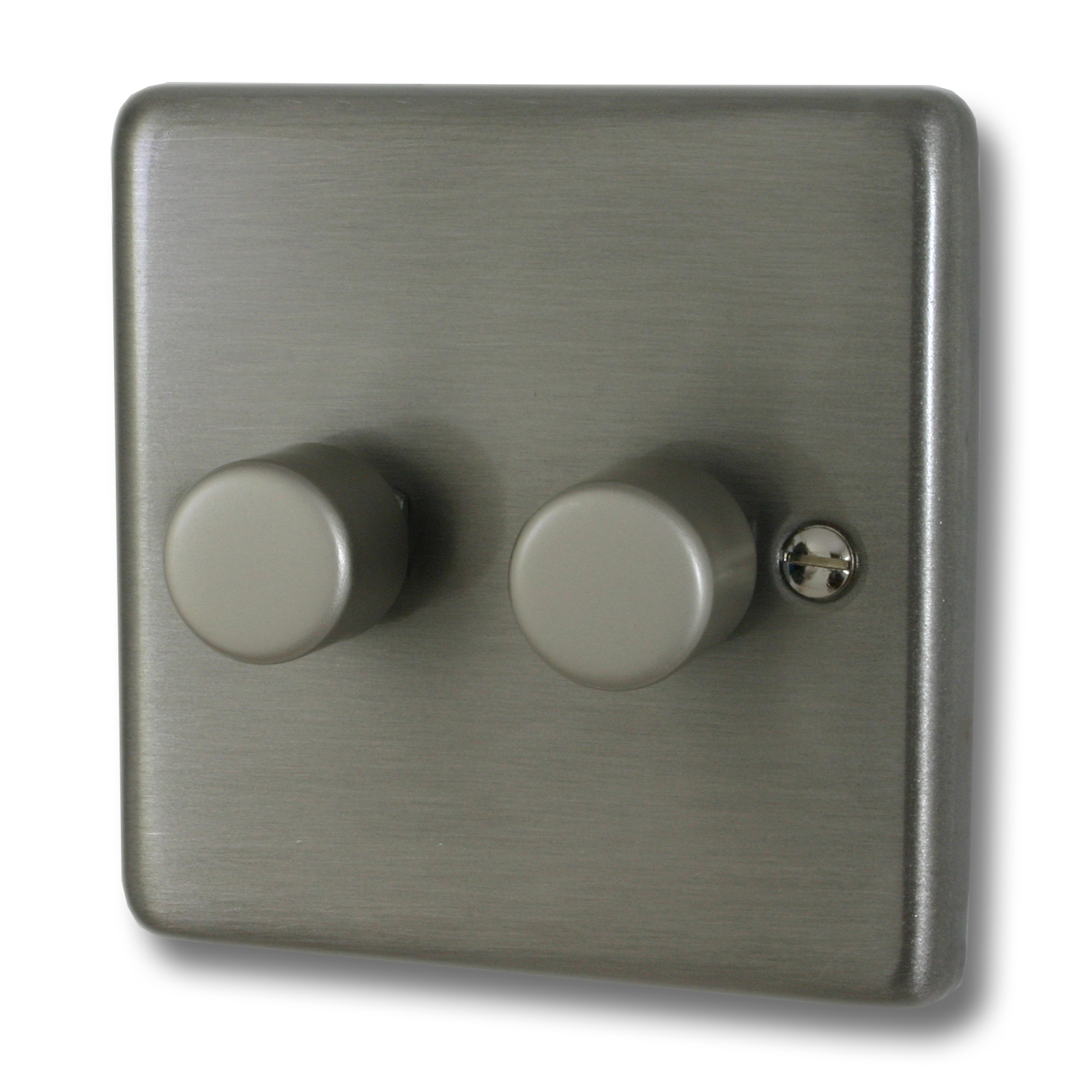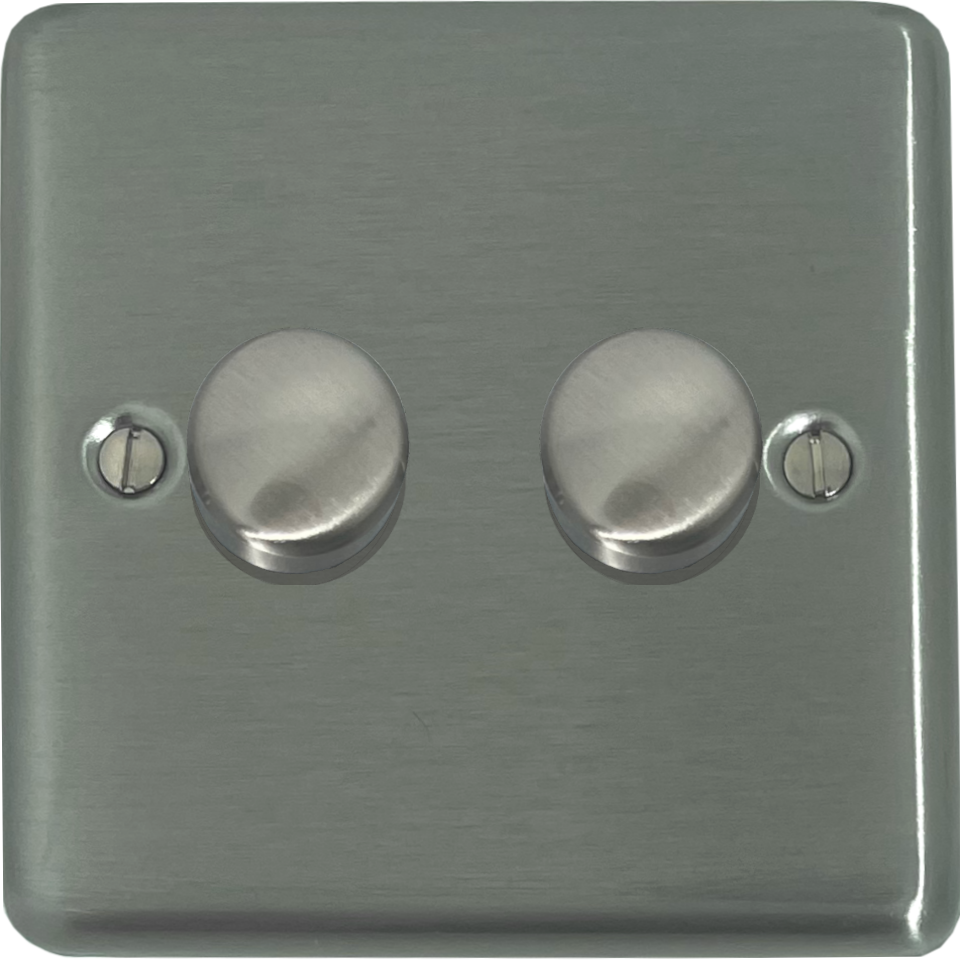 Contour Brushed Steel Push Dimmer (2 Gang/400W) - G+H CSS12