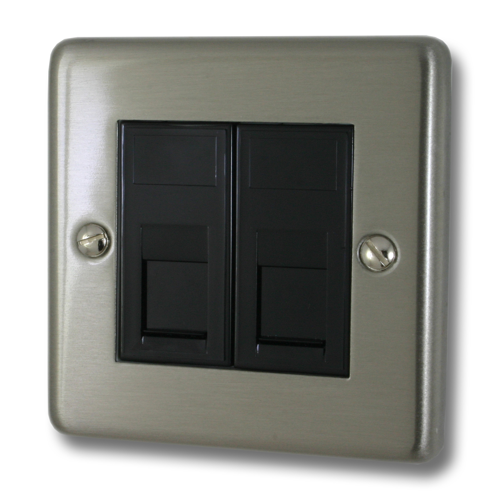 Contour Brushed Steel RJ45 Socket (2 Gang/Black Insert) - G+H CSS62B