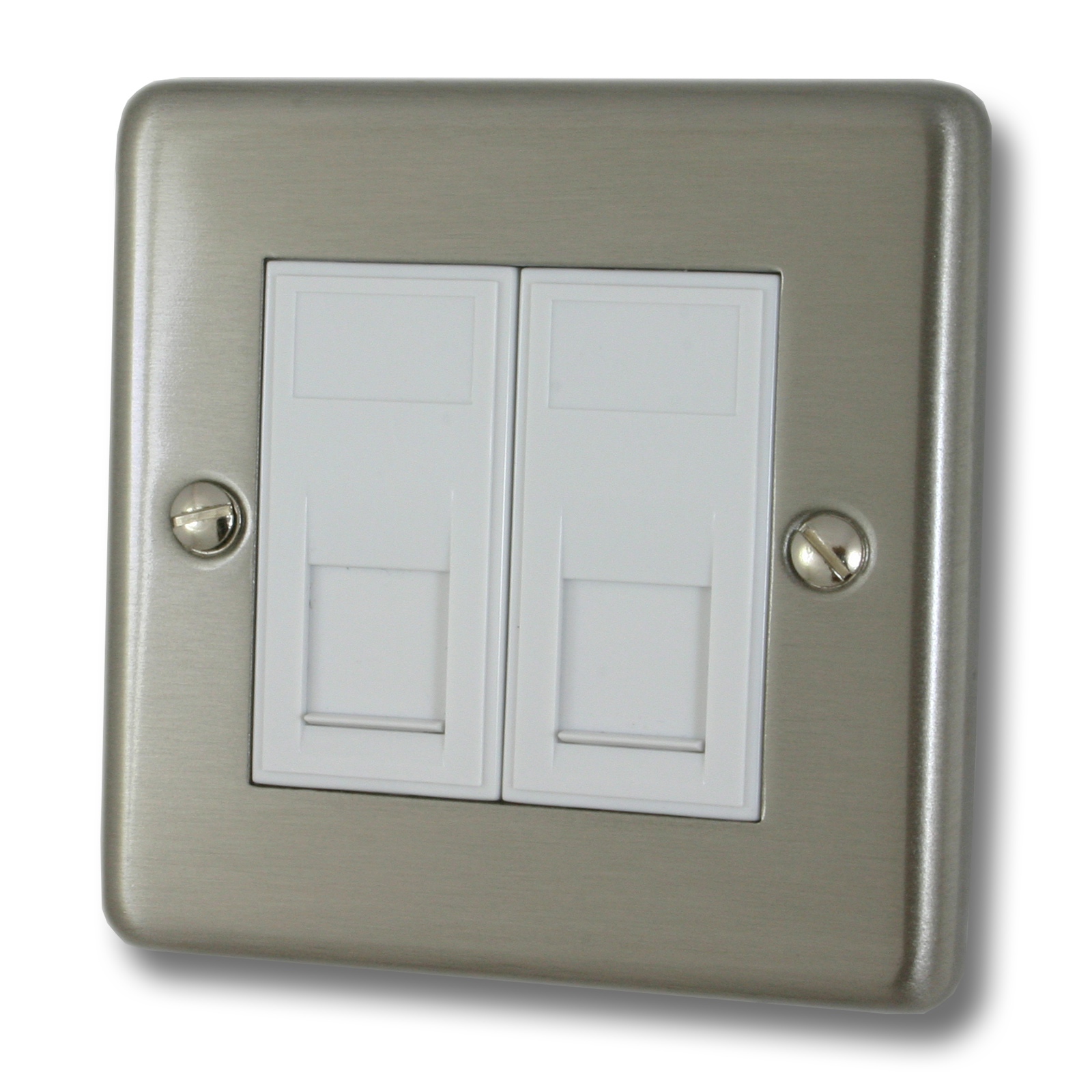 Contour Brushed Steel RJ45 Socket (2 Gang/White Insert) - G+H CSS62W