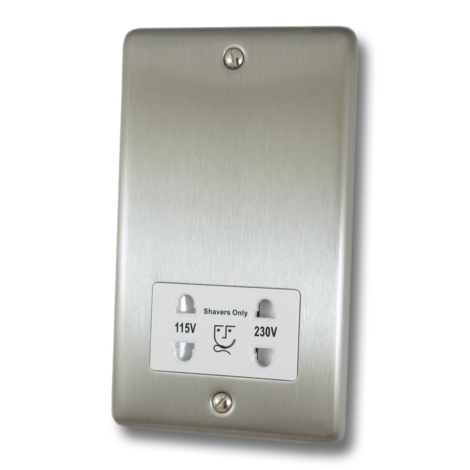 Contour Brushed Steel Shaver Socket (White Insert) - G+H CSS30W