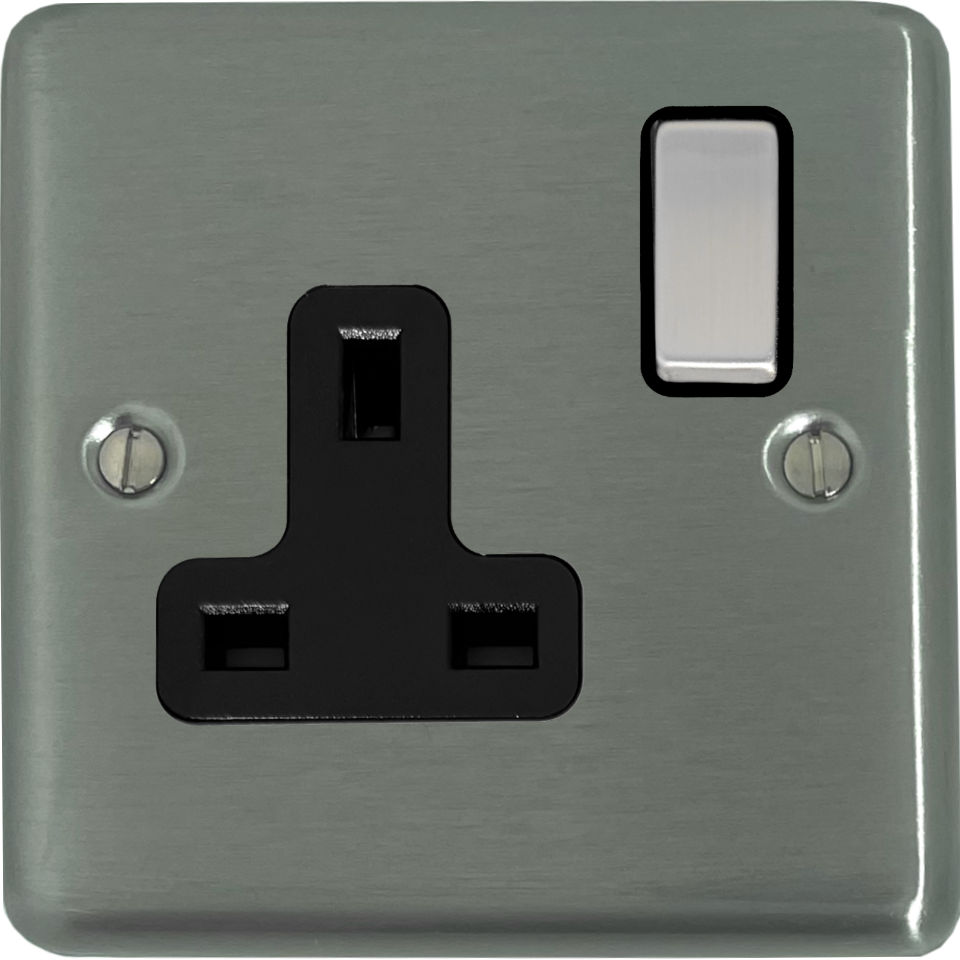 Contour Brushed Steel Single Socket (Black Insert/Satin Chrome Switch) - G+H CSS309