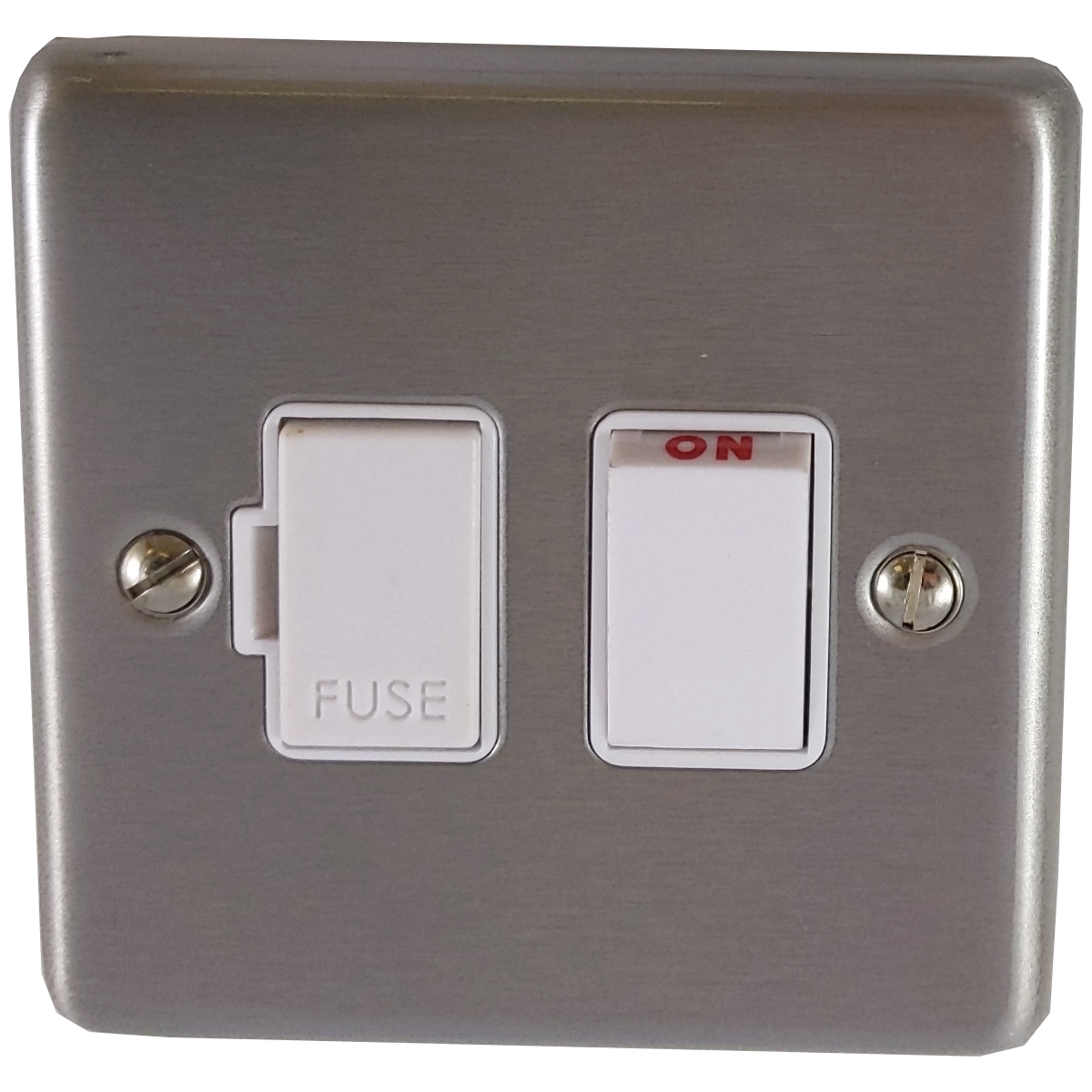 Contour Brushed Steel Switched Fused Spur (White Switch) - G+H CSS57W