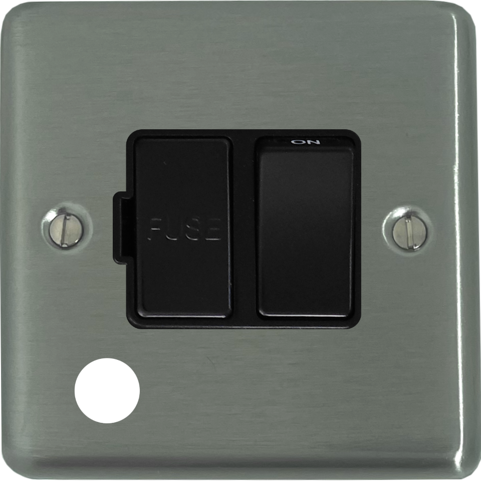 Contour Brushed Steel Switched Fused Spur with Flex Outlet (Black Switch) - G+H CSS56B