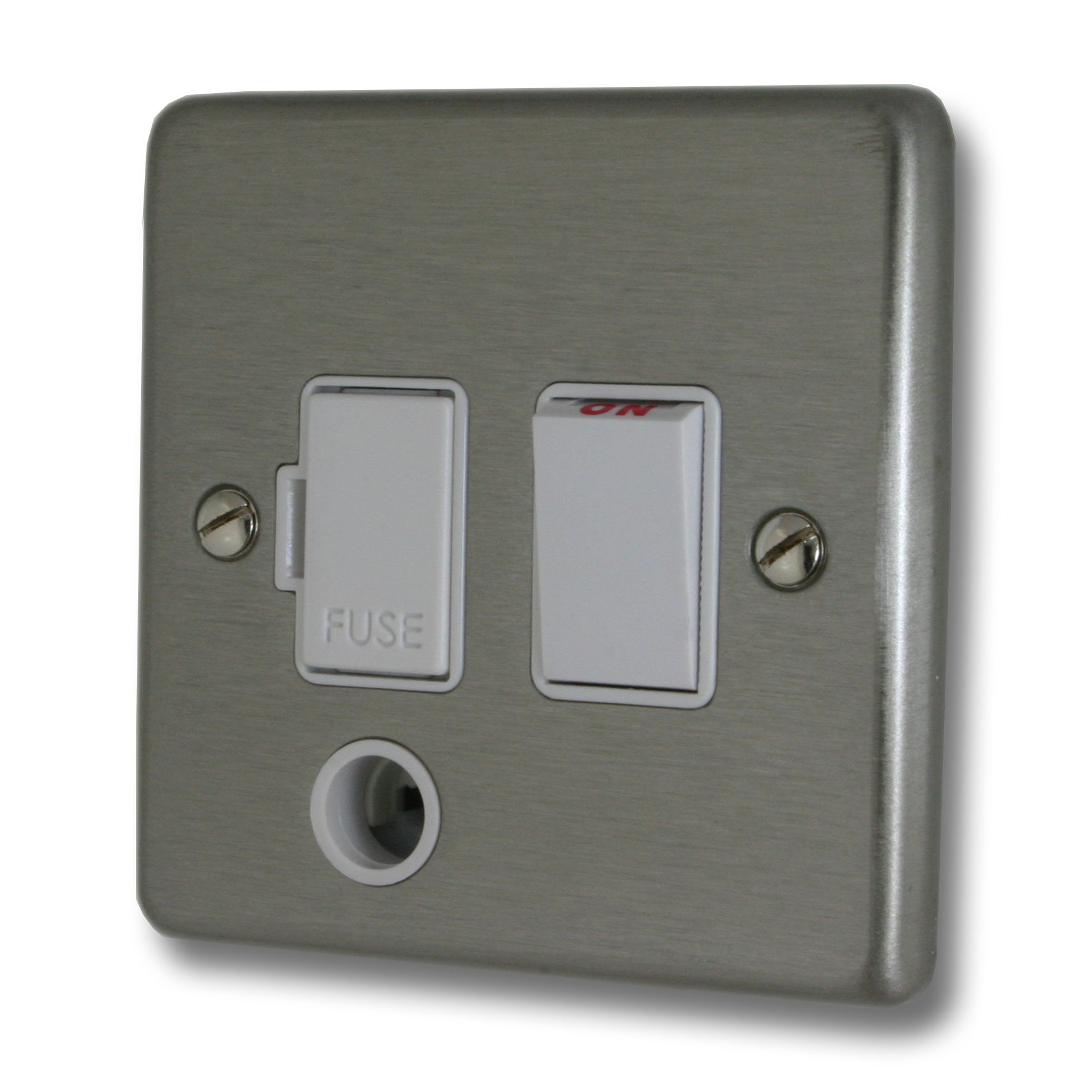 Contour Brushed Steel Switched Fused Spur with Flex Outlet (White Switch) - G+H CSS56W