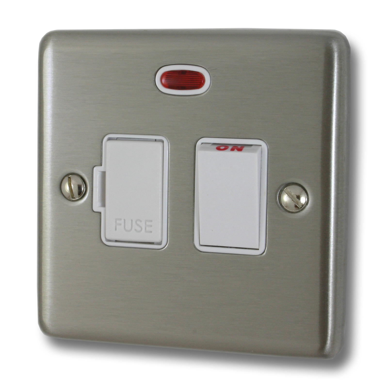 Contour Brushed Steel Switched Fused Spur with Neon (White Switch) - G+H CSS27W