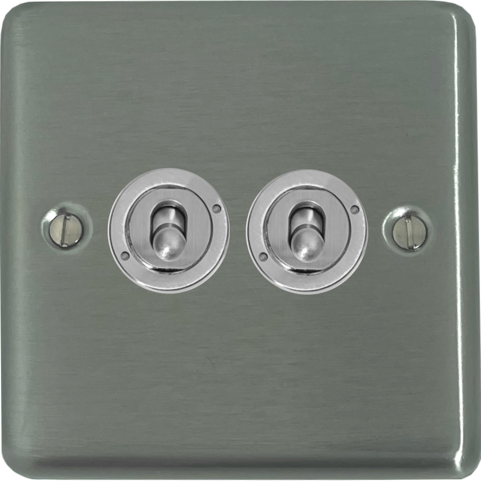 Contour Brushed Steel Toggle Switch (2 Gang) - G+H CSS382