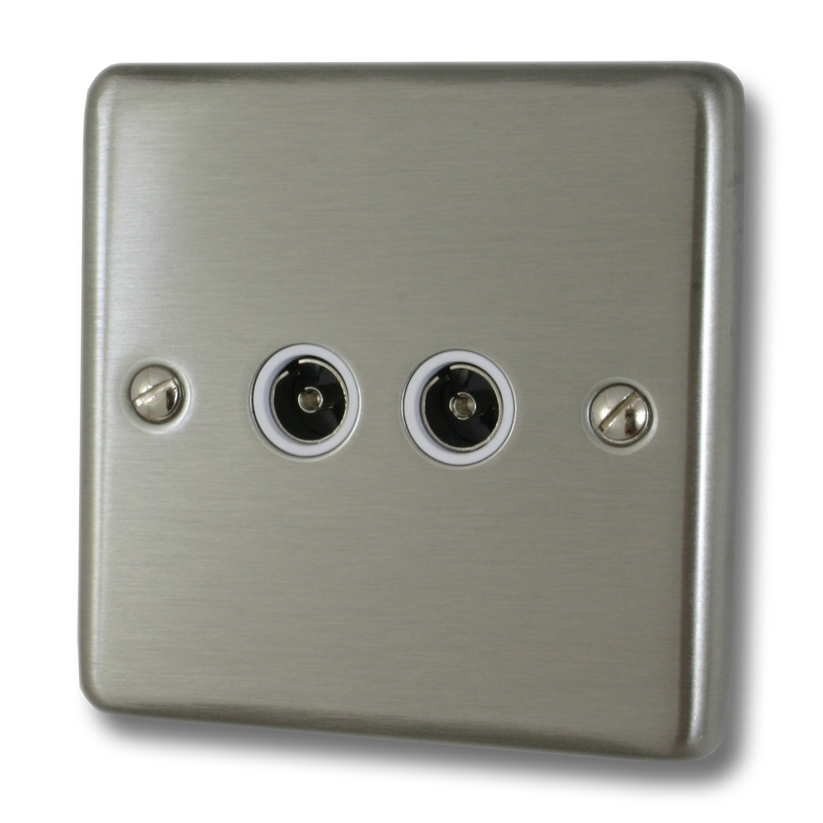 Contour Brushed Steel TV Socket (2 Gang/White Insert) - G+H _CSS36