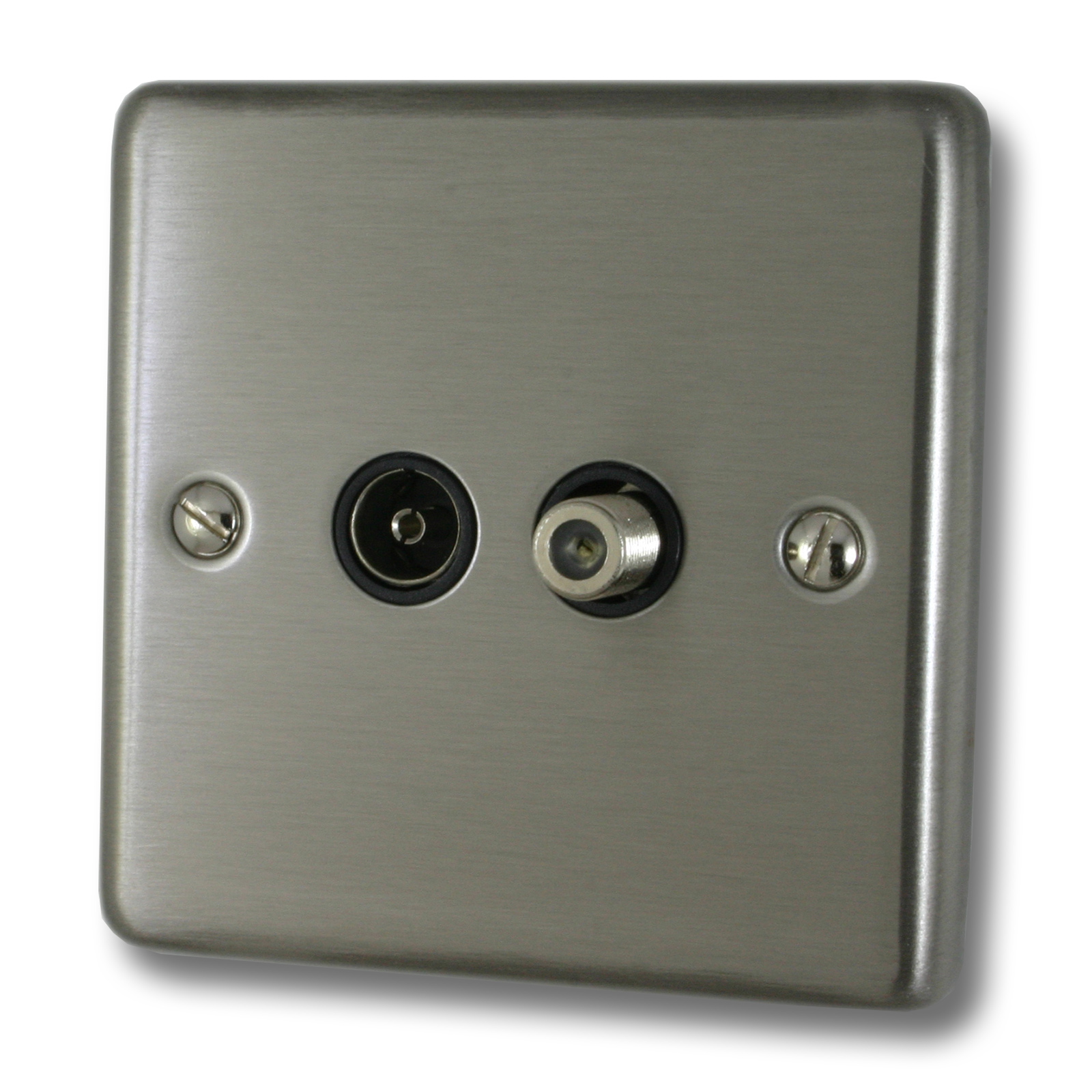 Contour Brushed Steel TV/Satellite Socket (Black Insert) - G+H CSS38B