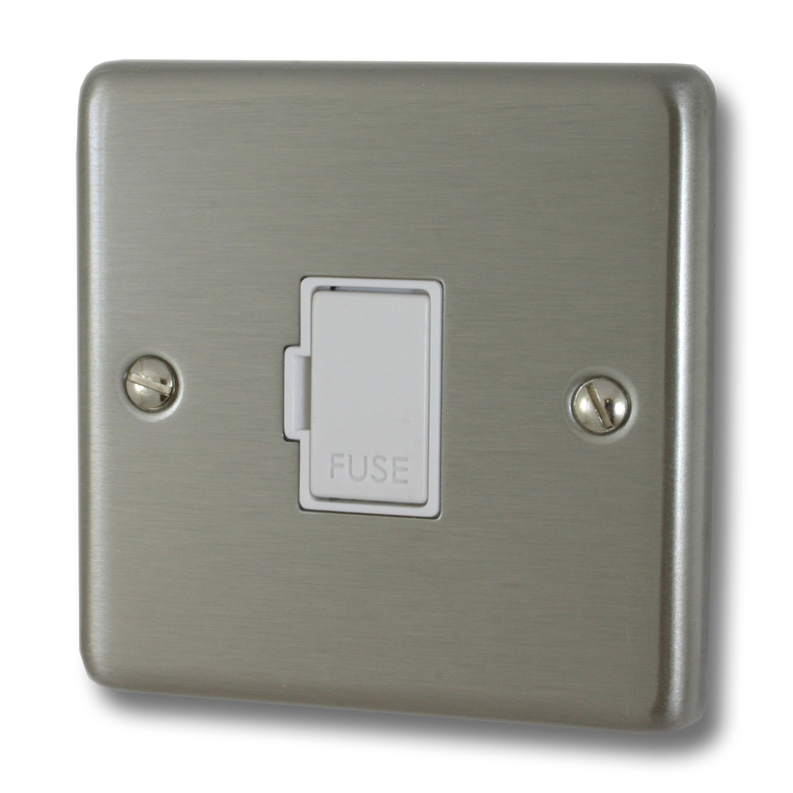 Contour Brushed Steel Unswitched Fused Spur (White Insert) - G+H _CSS90