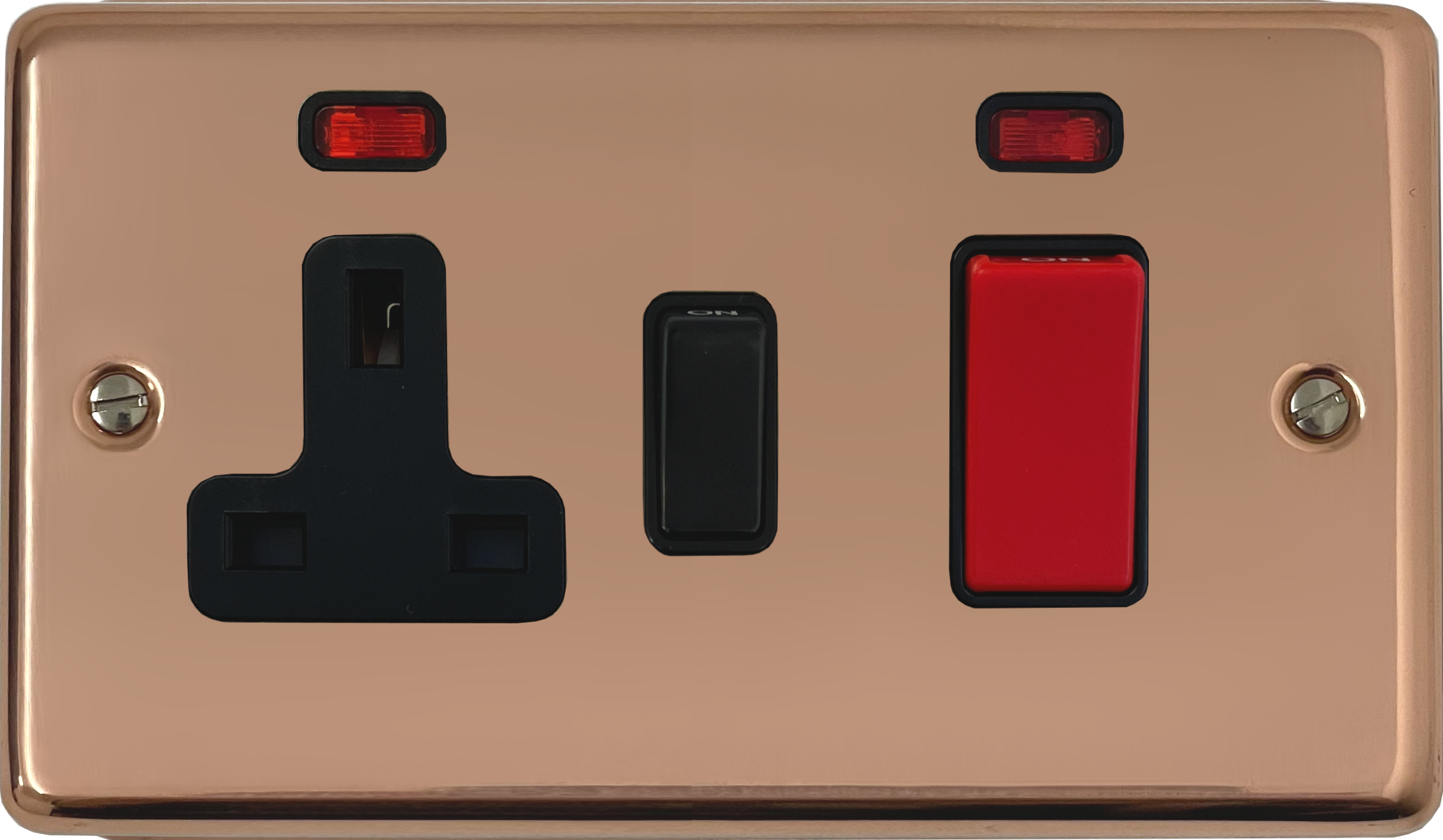 Contour Copper Cooker Switch with Socket (Black Insert/Black Switch) - G+H CBC29B