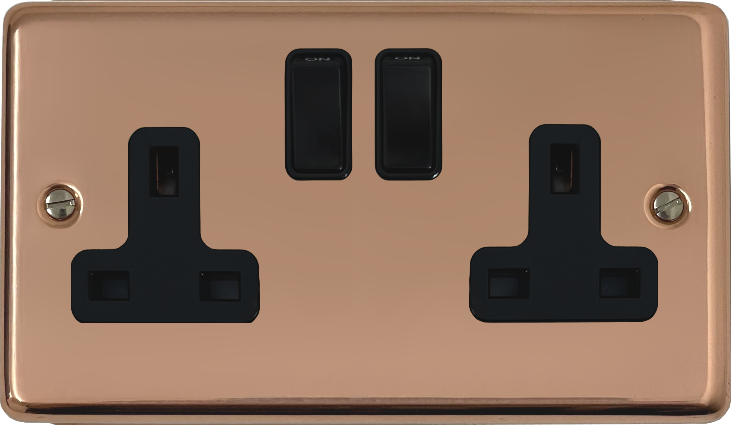 Contour Copper Double Socket (Black Switch) - G+H CBC10B