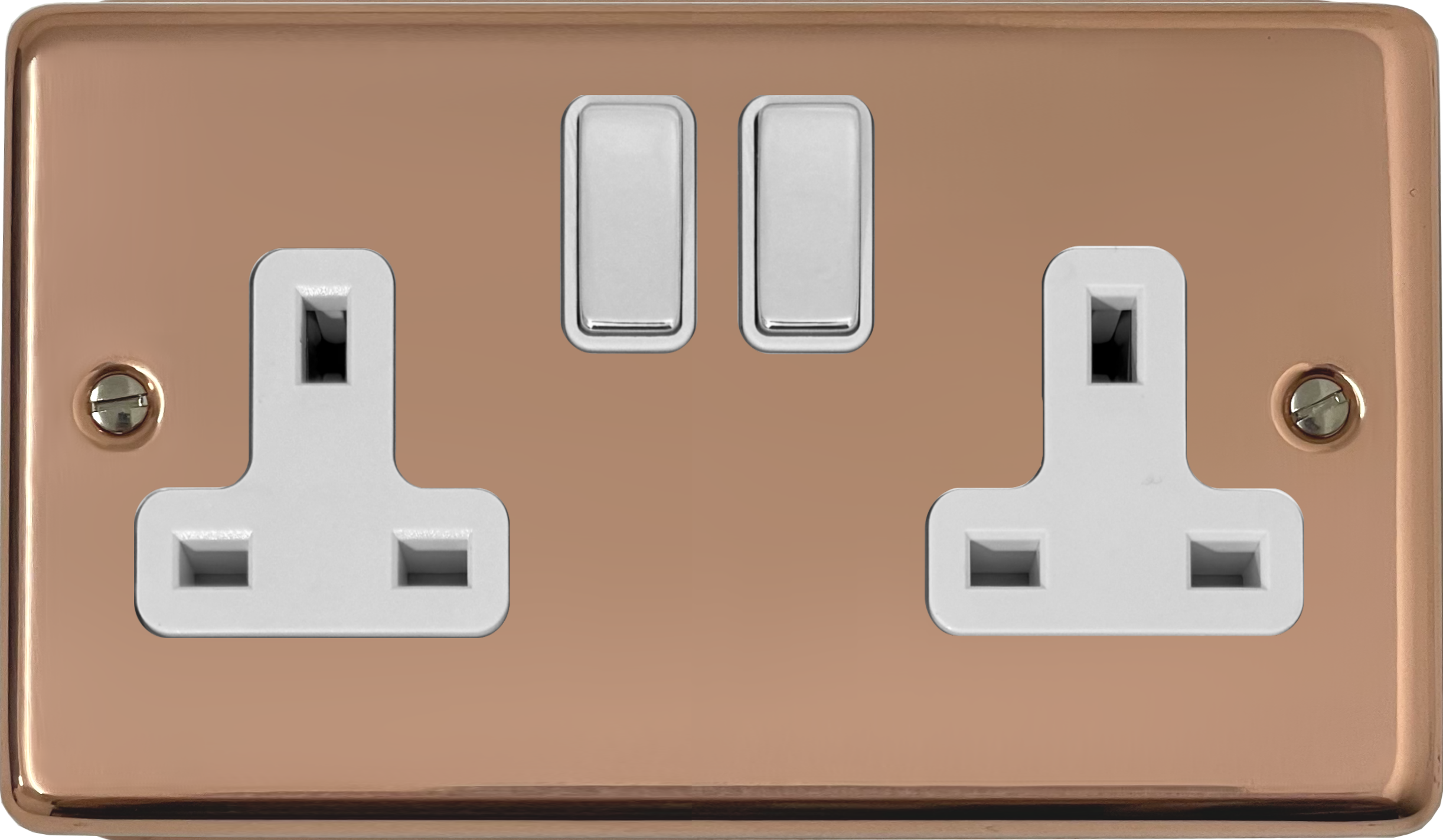 Contour Copper Double Socket (White Insert/Polished Chrome Switch) - G+H CBC210