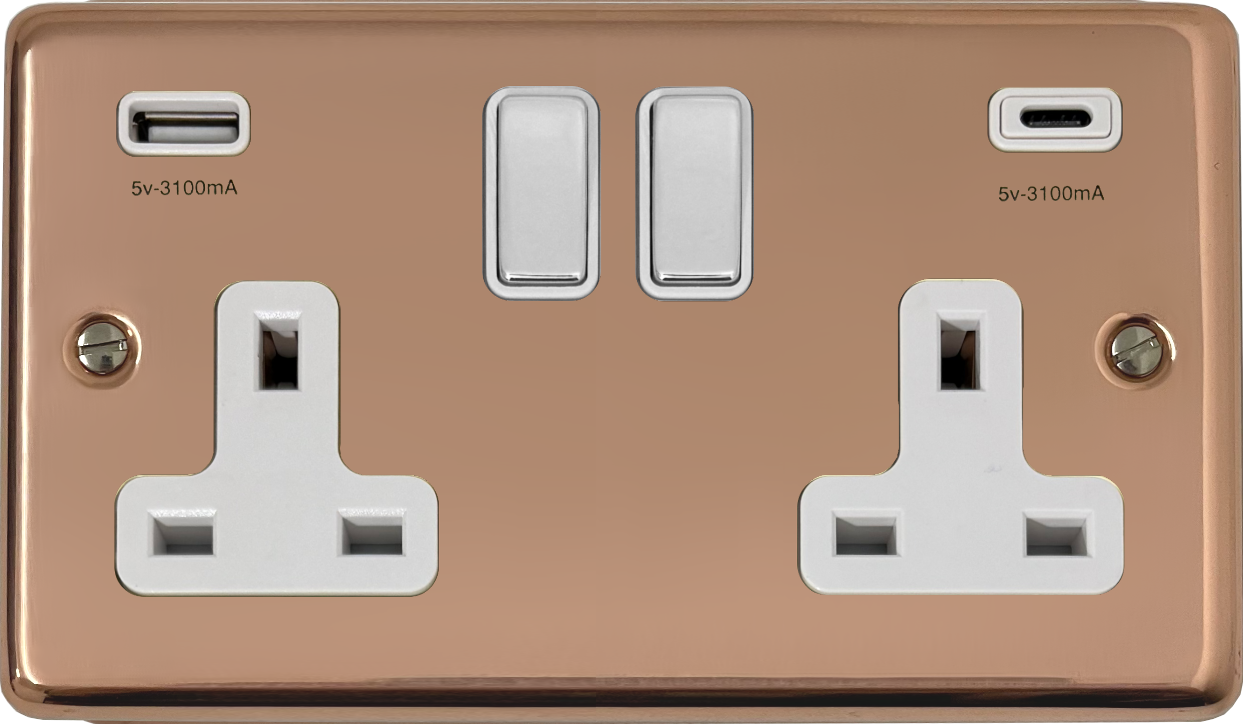 Contour Copper Double Socket with USB (USB-A and USB-C/Polished Chrome Switches) - G+H CBC2911
