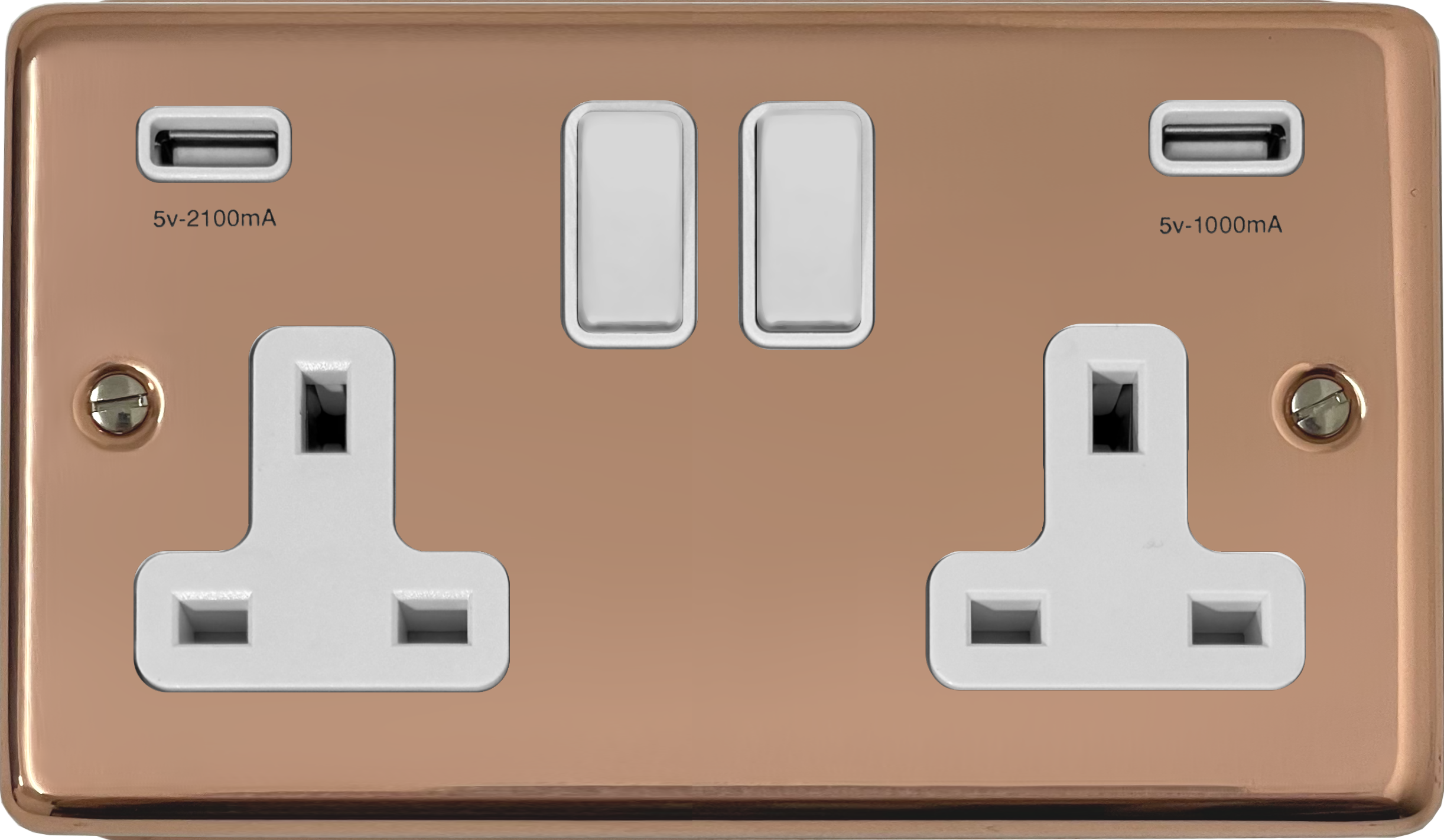 Contour Copper Double Socket with USB (White Switch) - G+H CBC910W