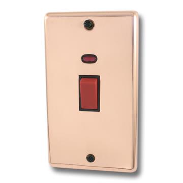 Contour Copper Hand Waxed 45A DP Switch with Neon (Black Insert/Red Switch/Vertical Plate) - G+H CBCHX28B