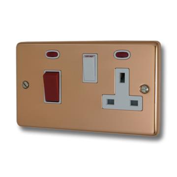 Contour Copper Hand Waxed Cooker Switch with Socket (White Insert/White Switch) - G+H CBCHX29W