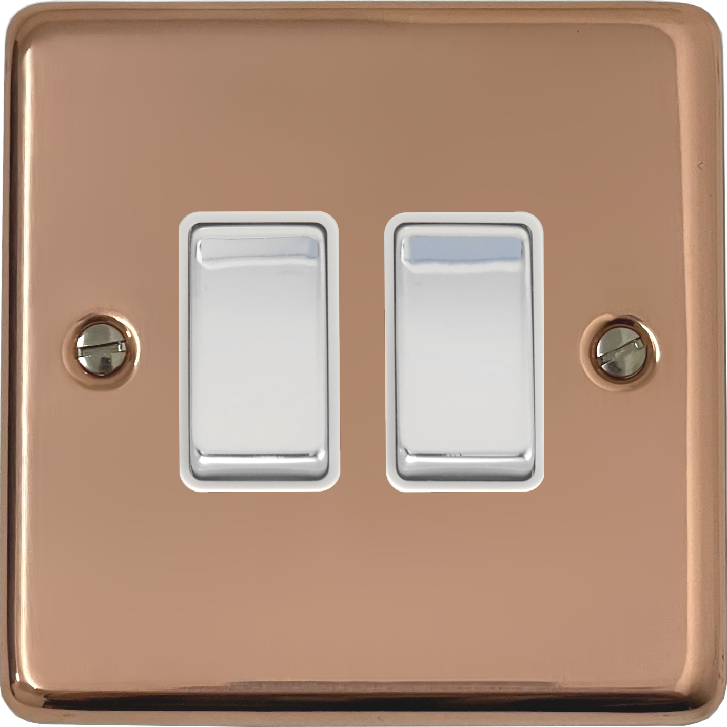 Contour Copper Hand Waxed Light Switch (2 Gang/White insert/Polished Chrome Switch) - G+H CBCHX202