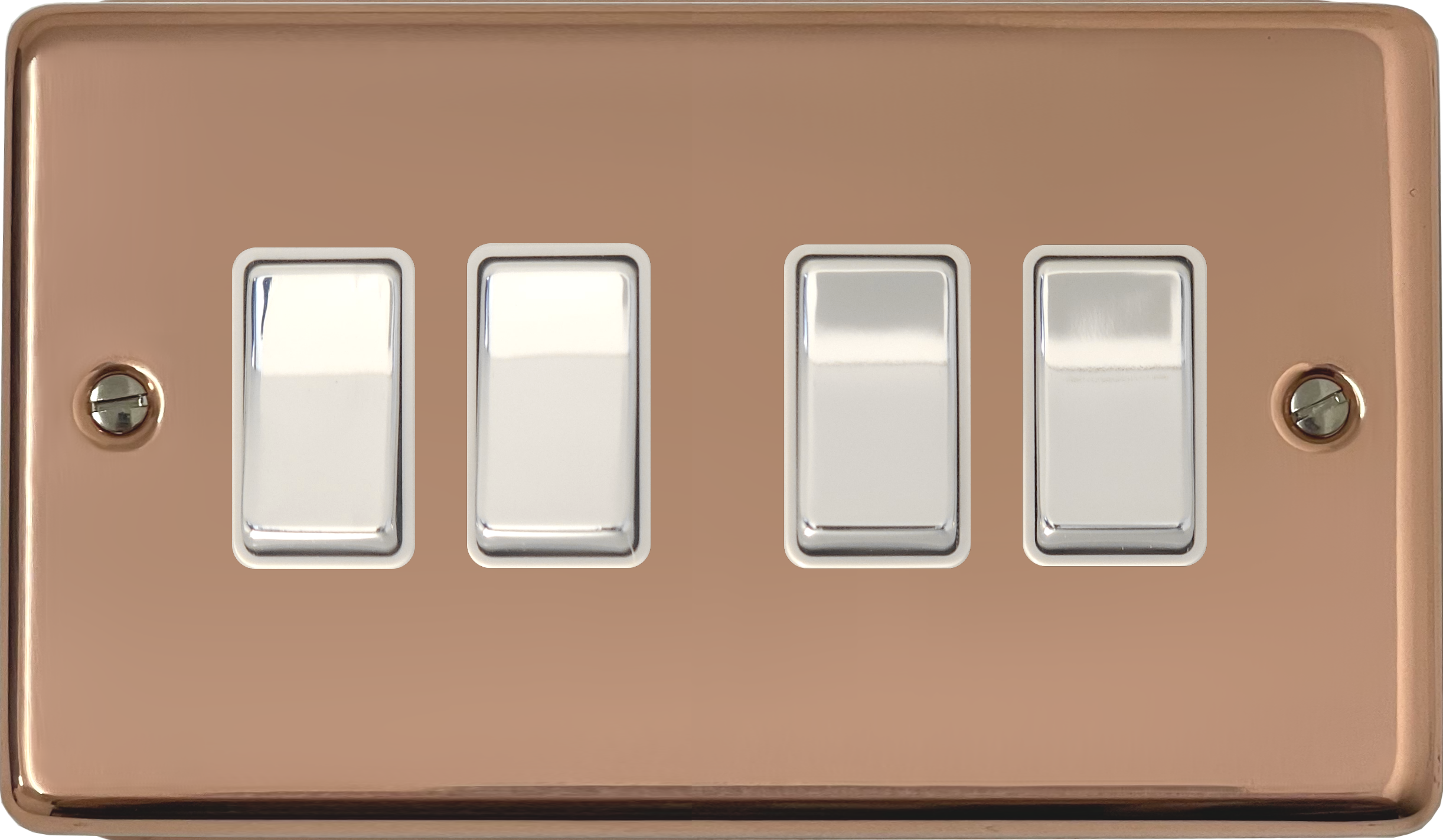 Contour Copper Hand Waxed Light Switch (4 Gang/White insert/Polished Chrome Switch) - G+H CBCHX204