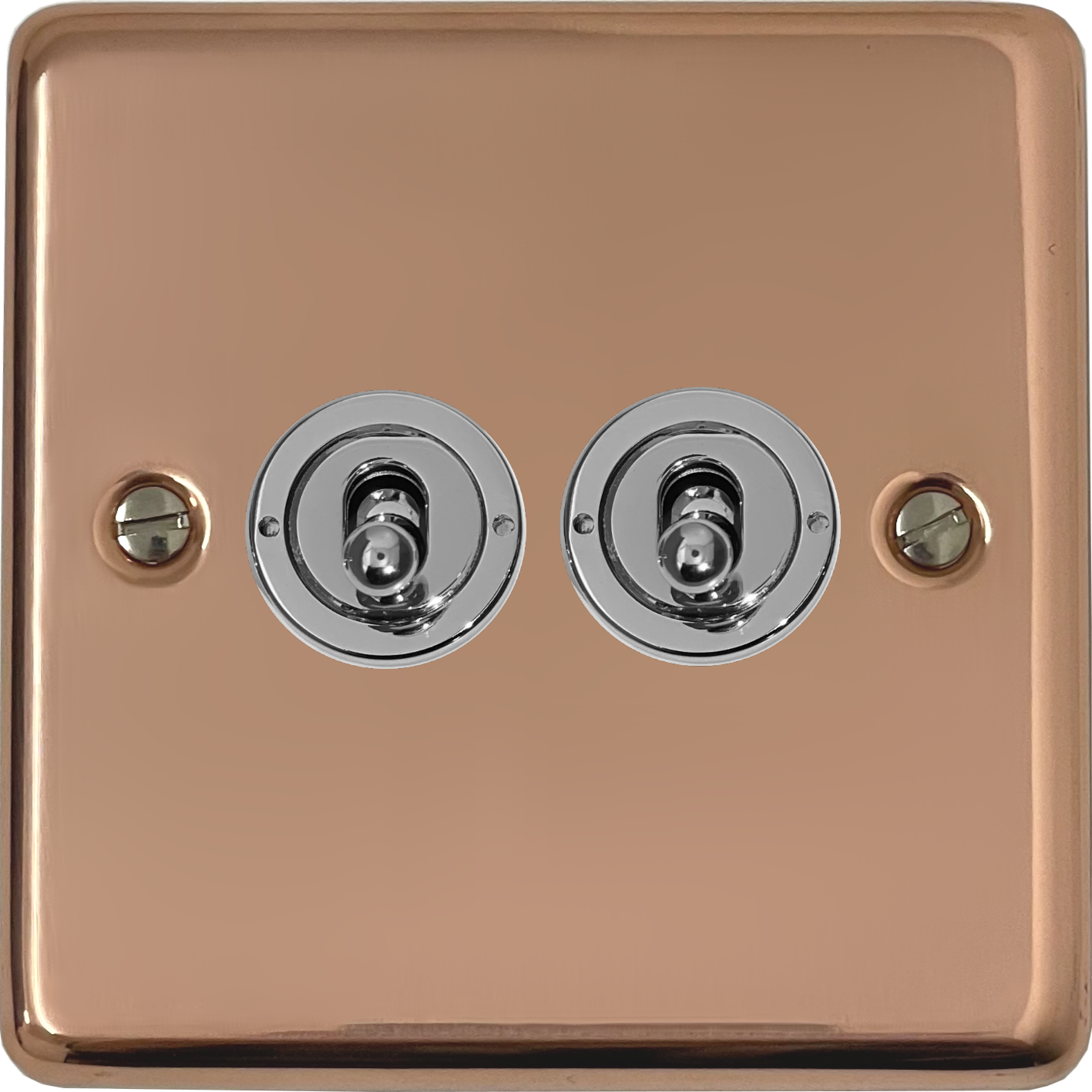 Contour Copper Hand Waxed Toggle Switch (2 Gang)