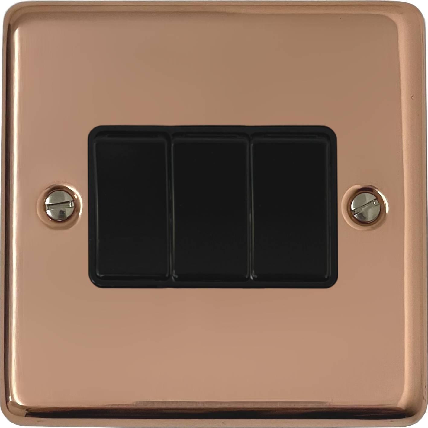 Contour Copper Light Switch (3 Gang/Black Switch) - G+H CBC3B