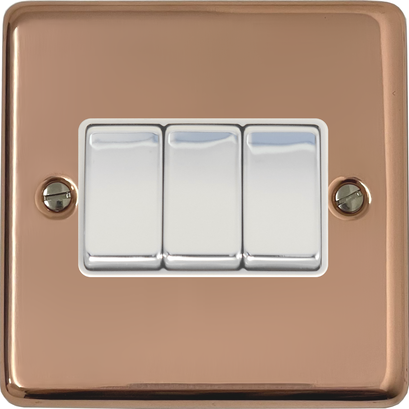 Contour Copper Light Switch (3 Gang/White Insert/Polished Chrome Switch) - G+H CBC203