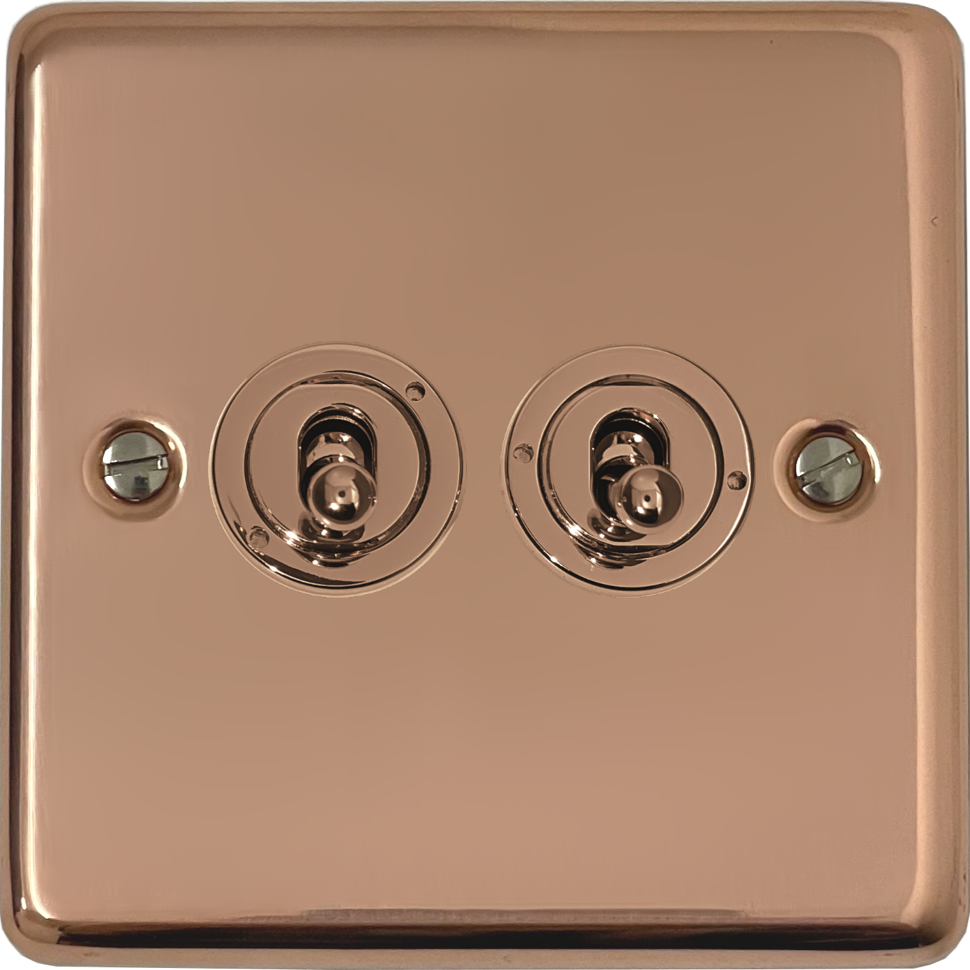 Contour Copper Toggle Switch (2 Gang/Bright Copper Toggles) - G+H CBC382-BC