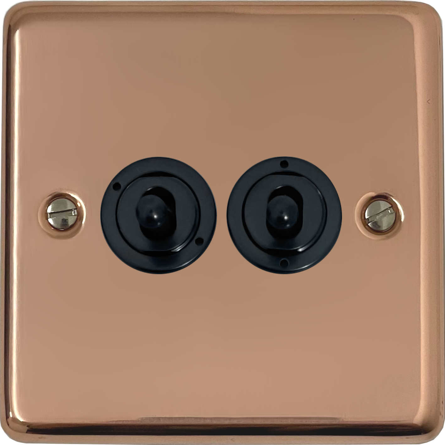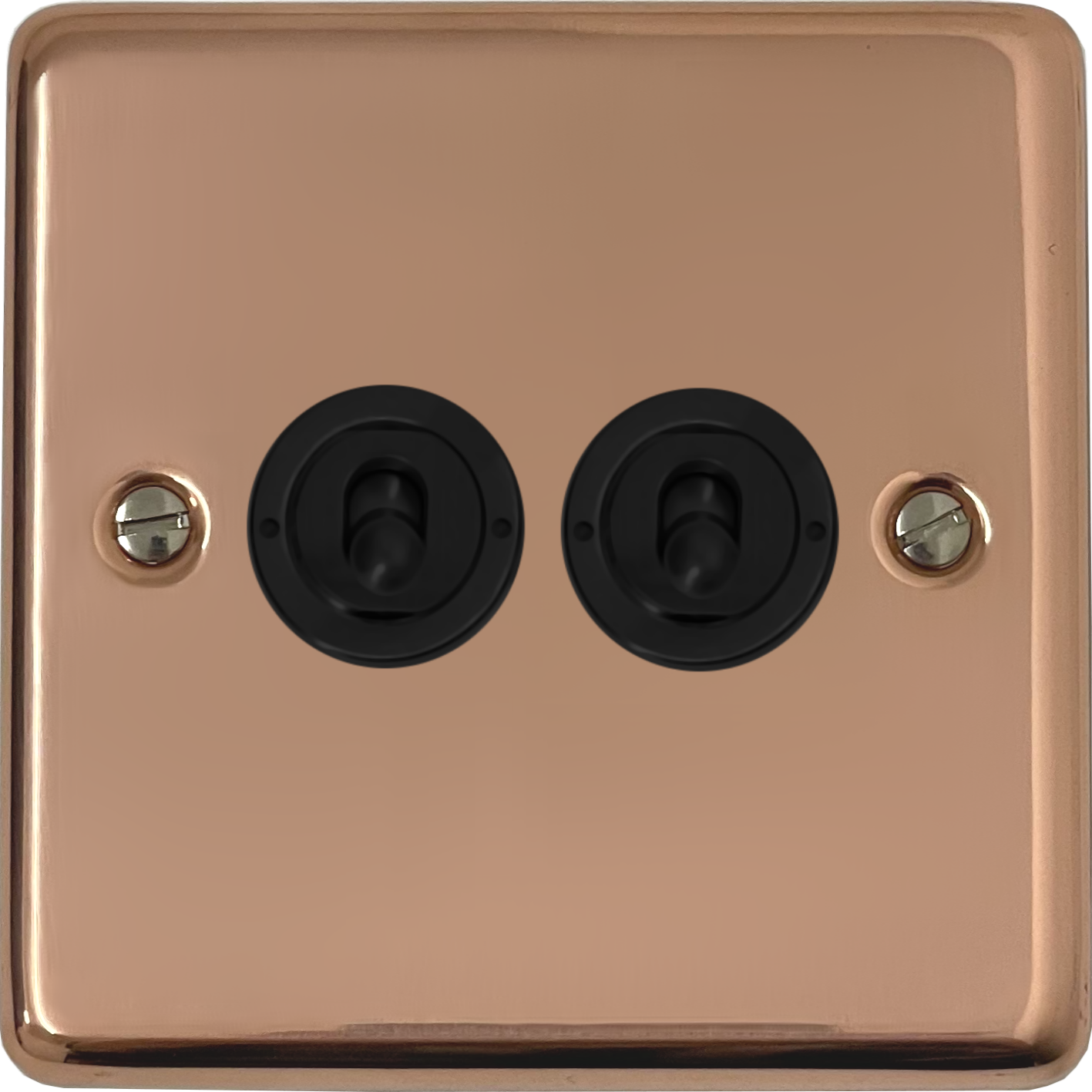 Contour Copper Toggle Switch (2 Gang/Matt Black Toggles) - G+H CBC382-FBK