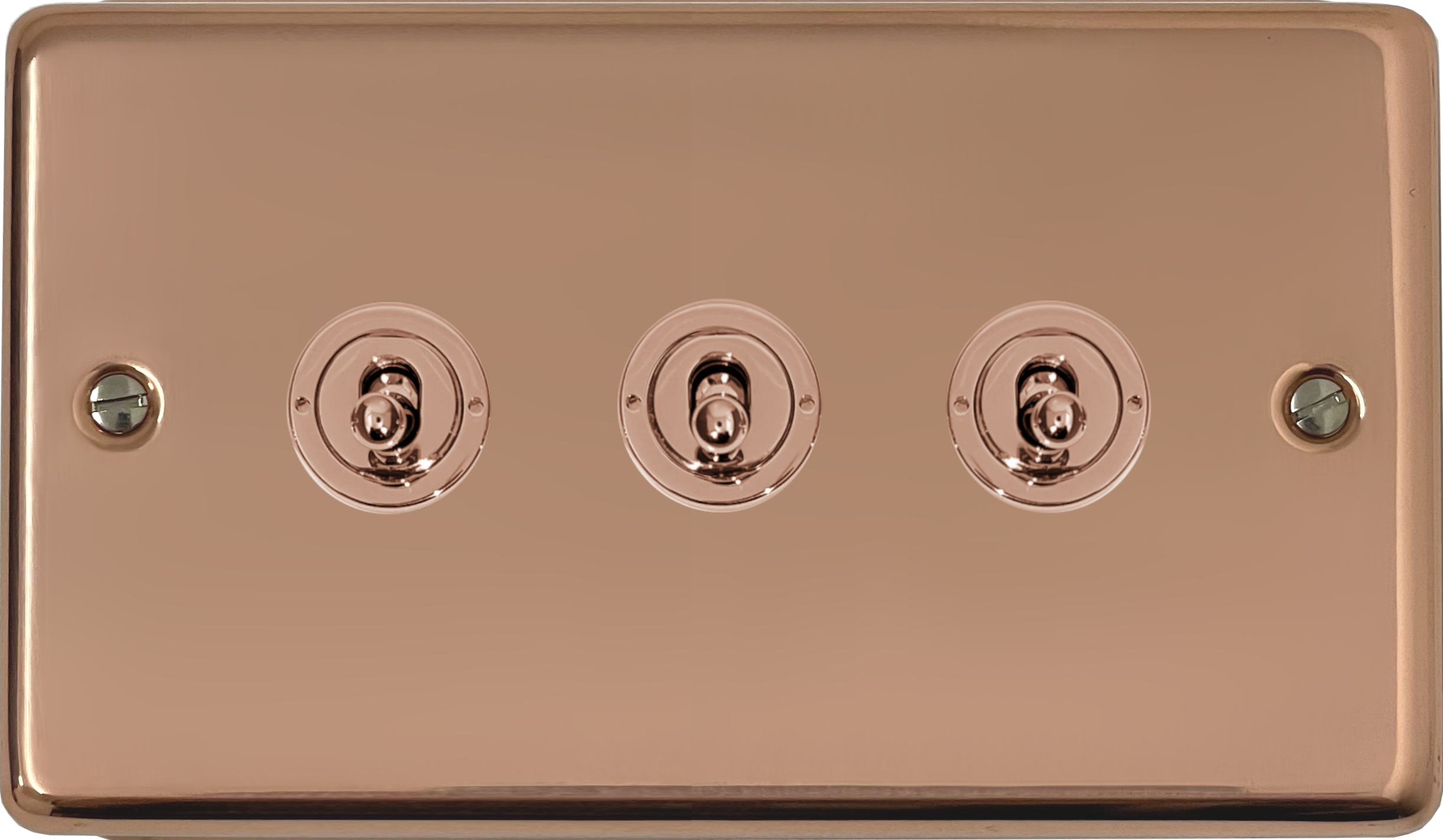 Contour Copper Toggle Switch (3 Gang/Bright Copper Toggles) - G+H CBC383-BC