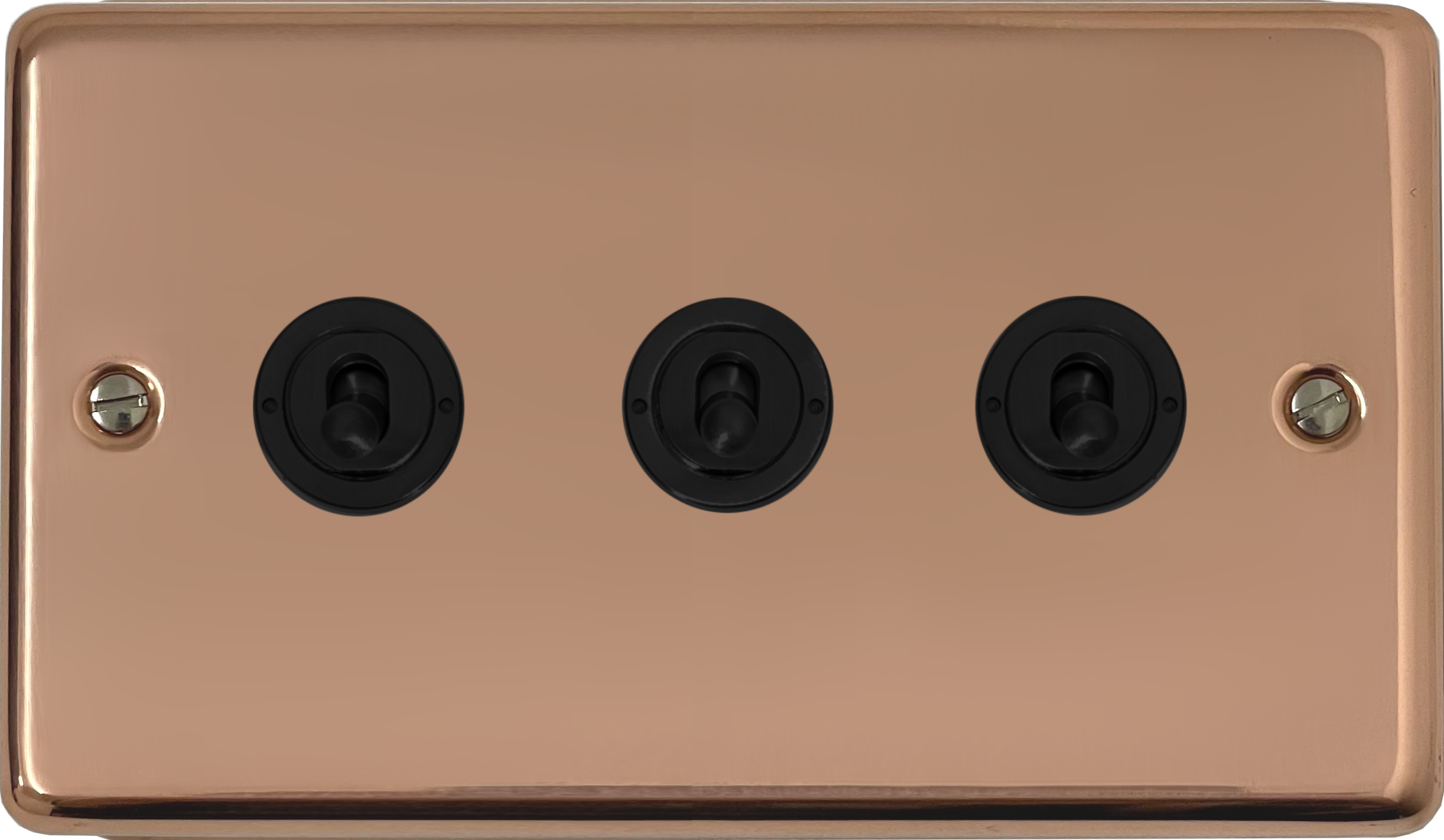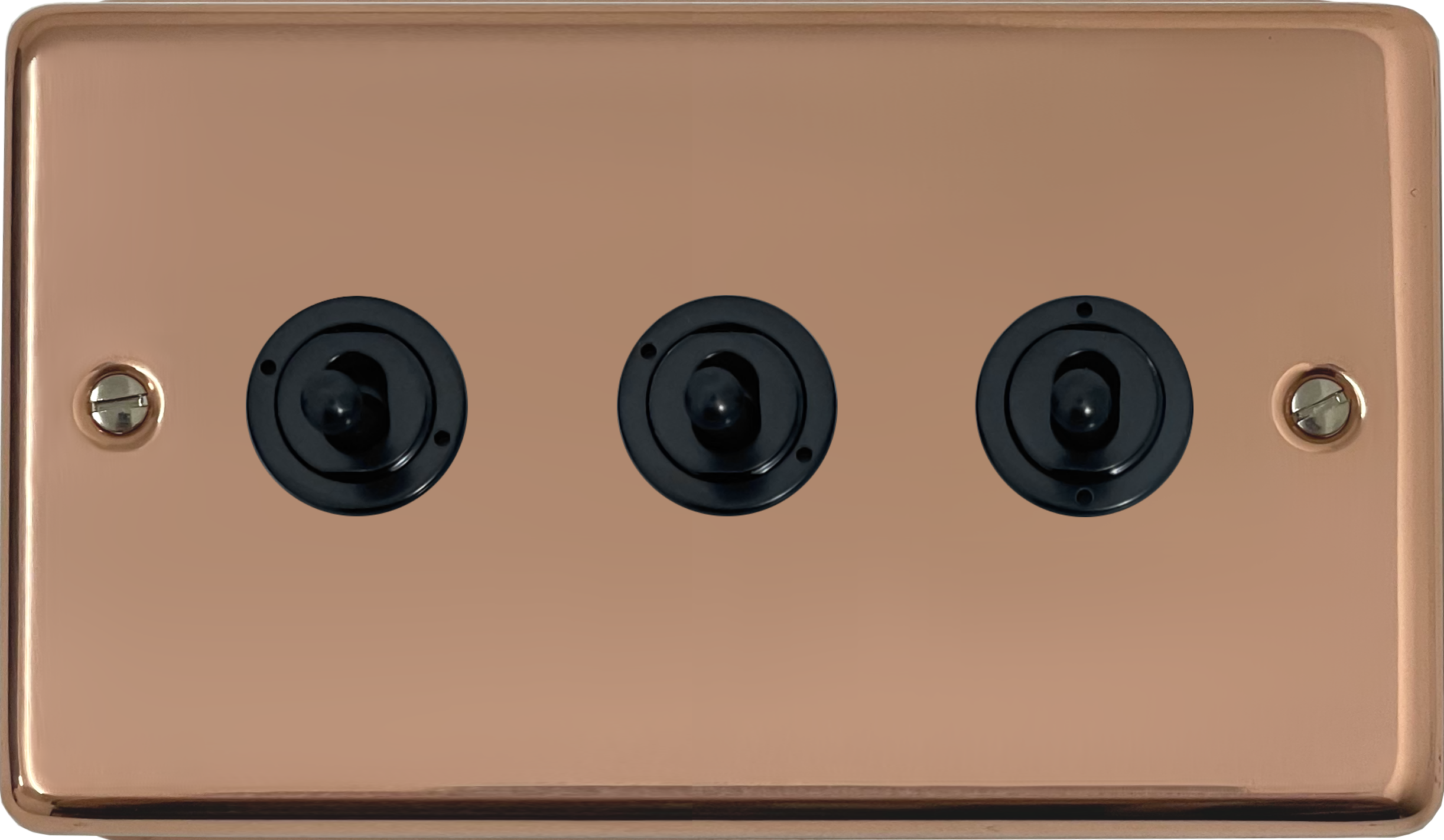 Contour Copper Toggle Switch (3 Gang/Matt Black Toggles) - G+H CBC383-FBK